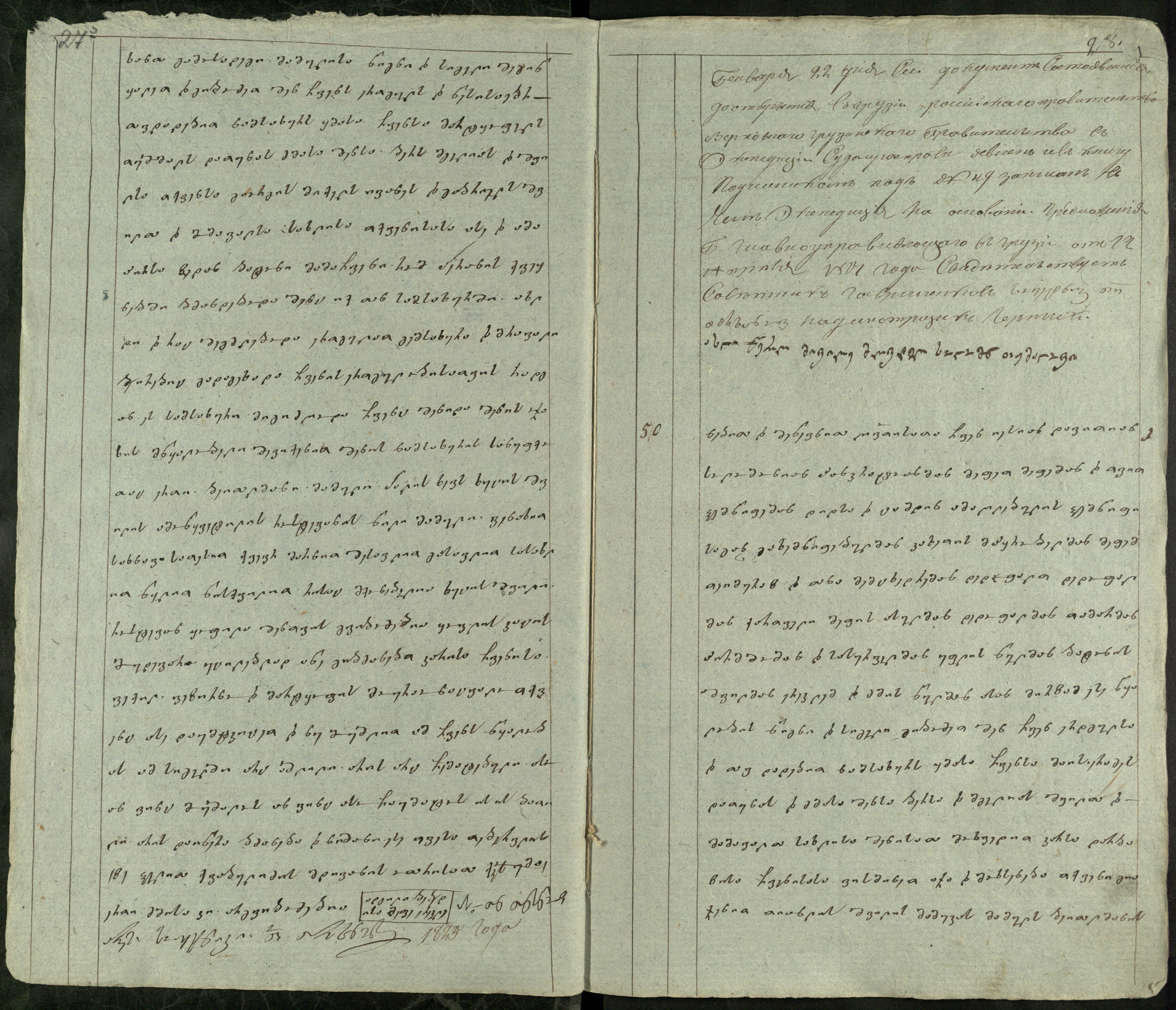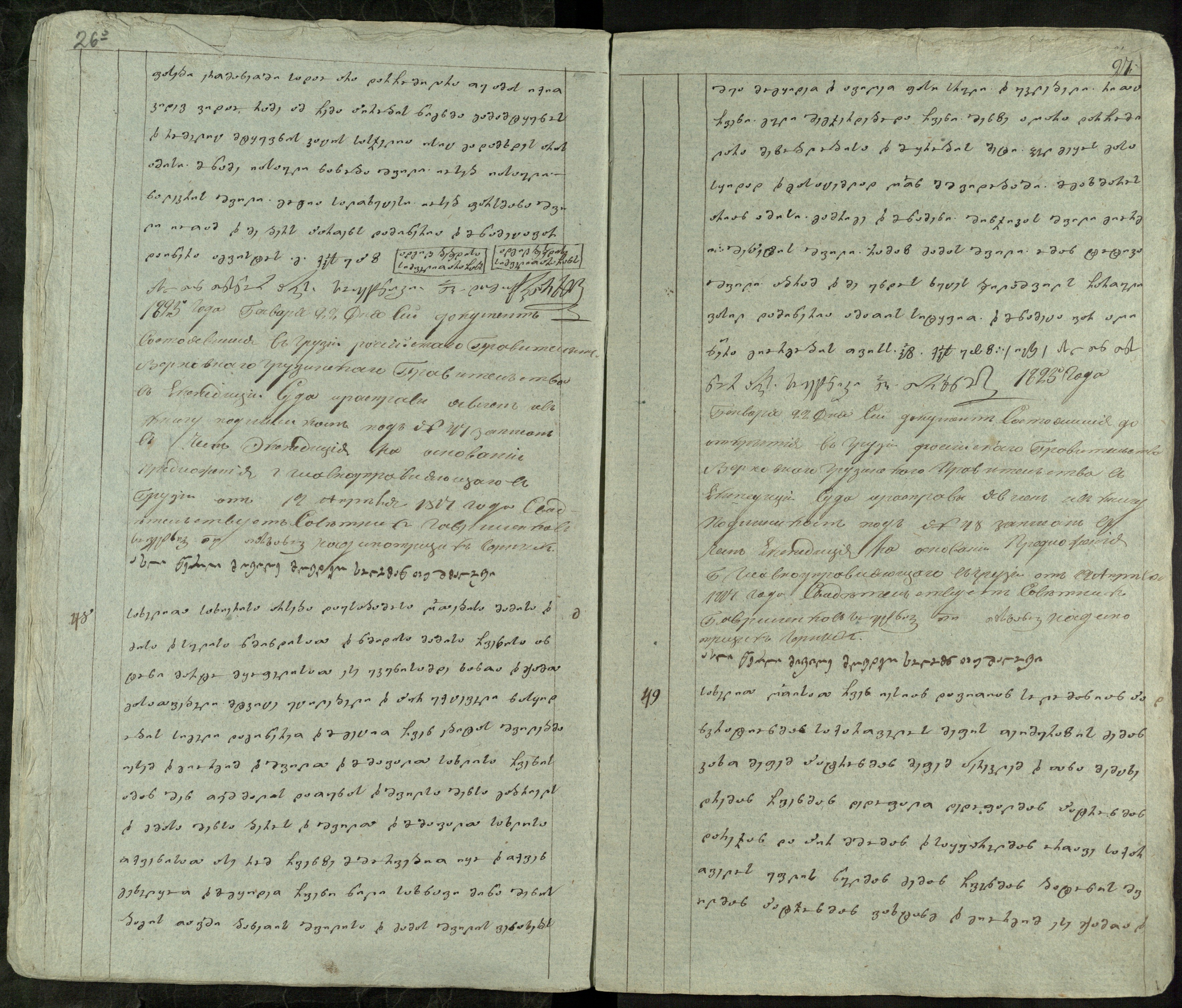 ქაღალდი ცისფერი, დაწერილი შავი მელნით