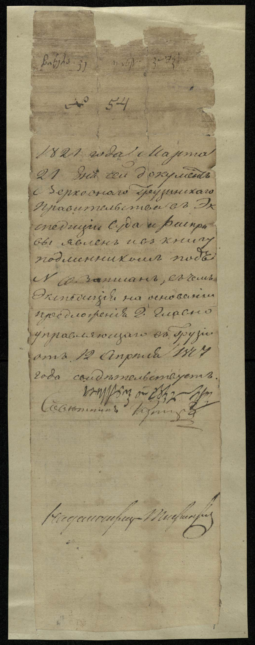 3. რეგისტრირებულია რუსეთის ადმინისტრაციის მიერ 1821 წ. 21 მარტი, სოვეტნიკი გაბრიელ რატიევი.
