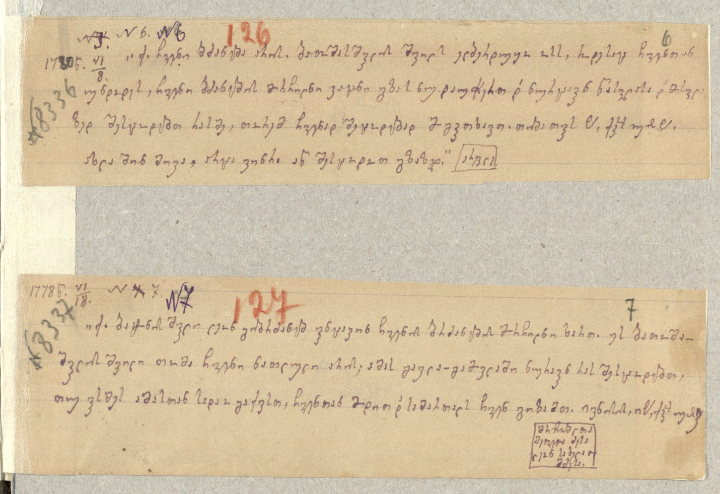 ქაღალდი ღია ყავისფერი, დაწერილი ლურჯი მელნით