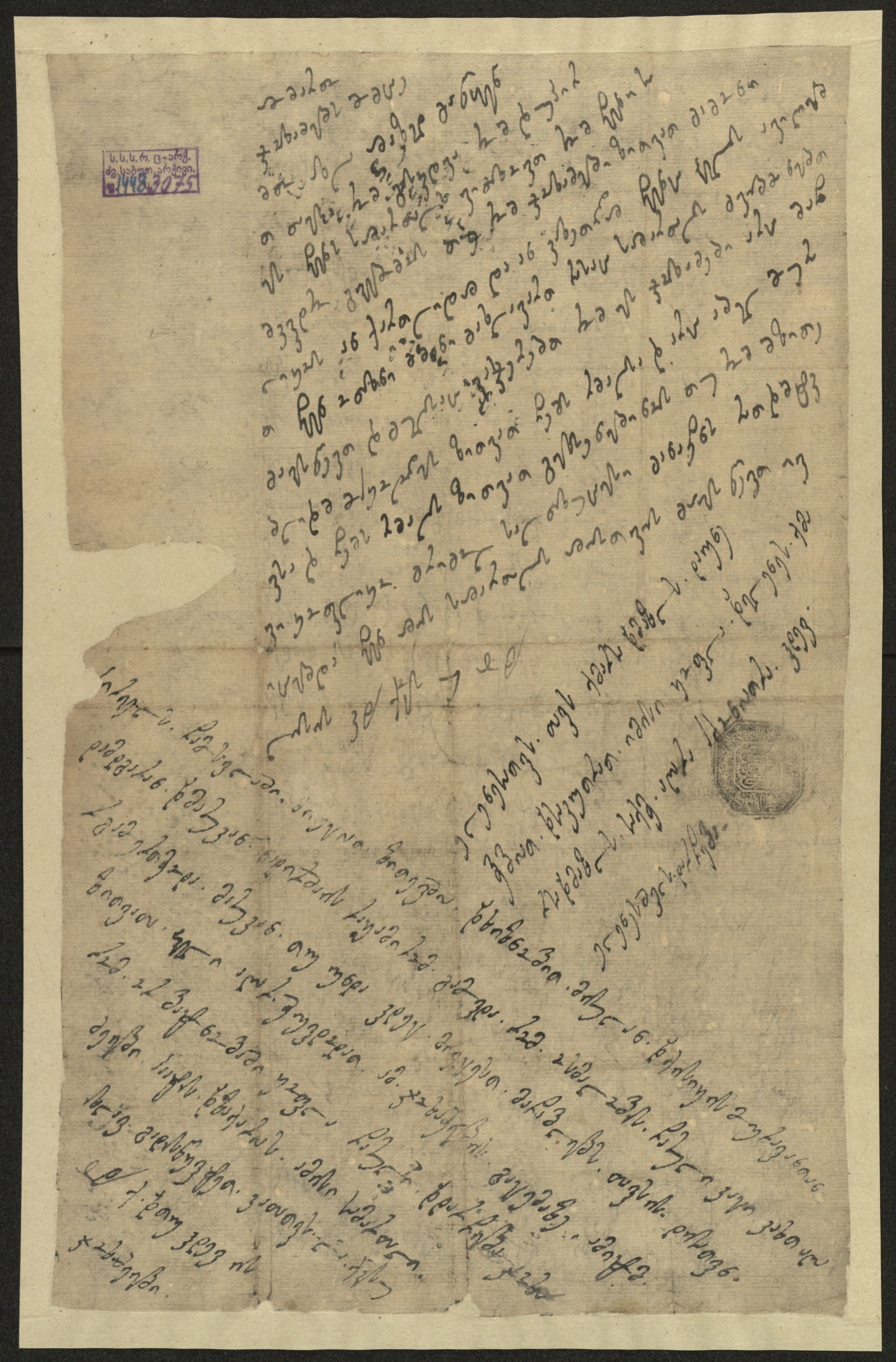 ქაღალდი ყავისფერი, დაწერილი შავი მელნით.