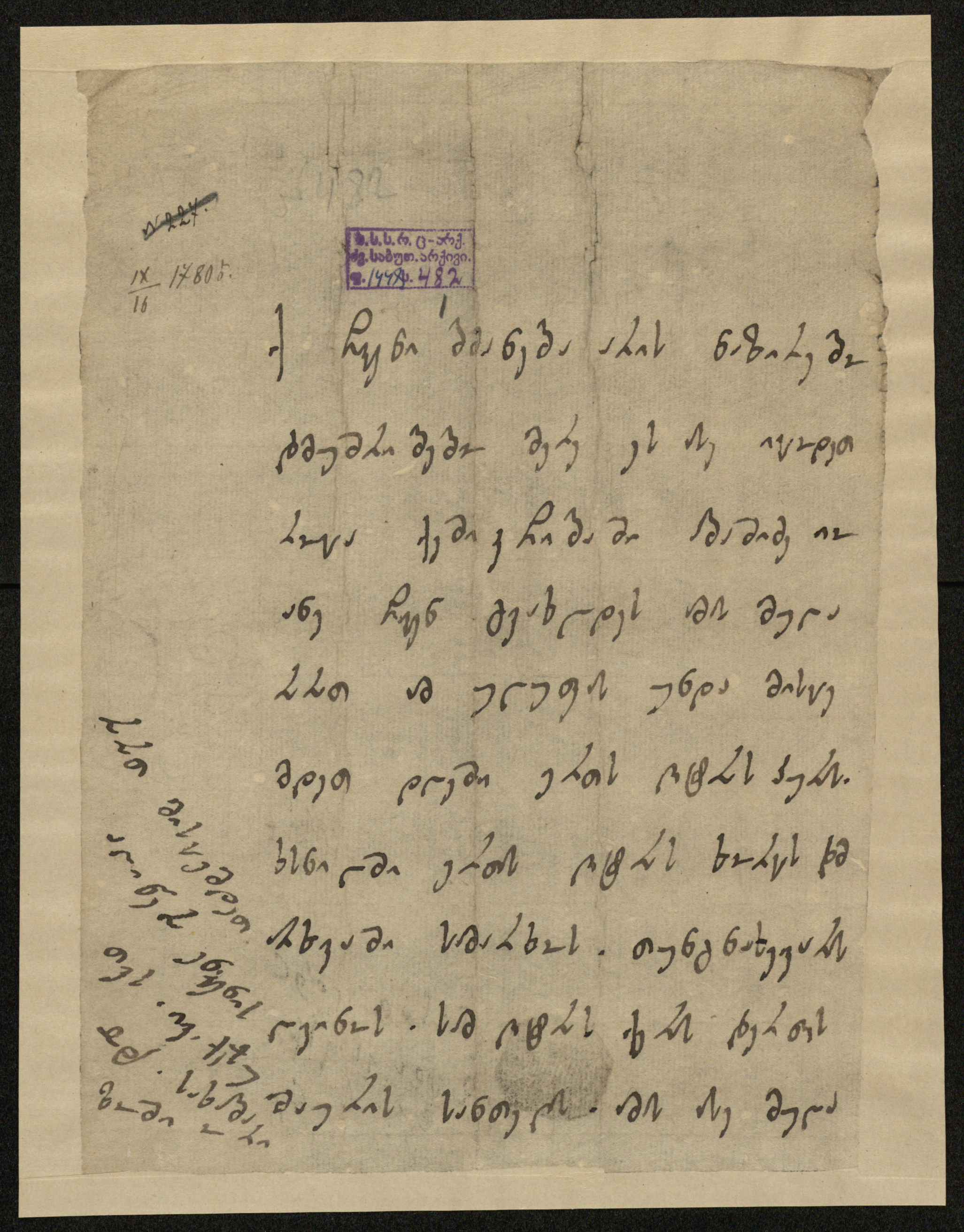 ჭვირნიშნიანი ქაღალდი ყვითელი, დაწერილი შავი მელნით