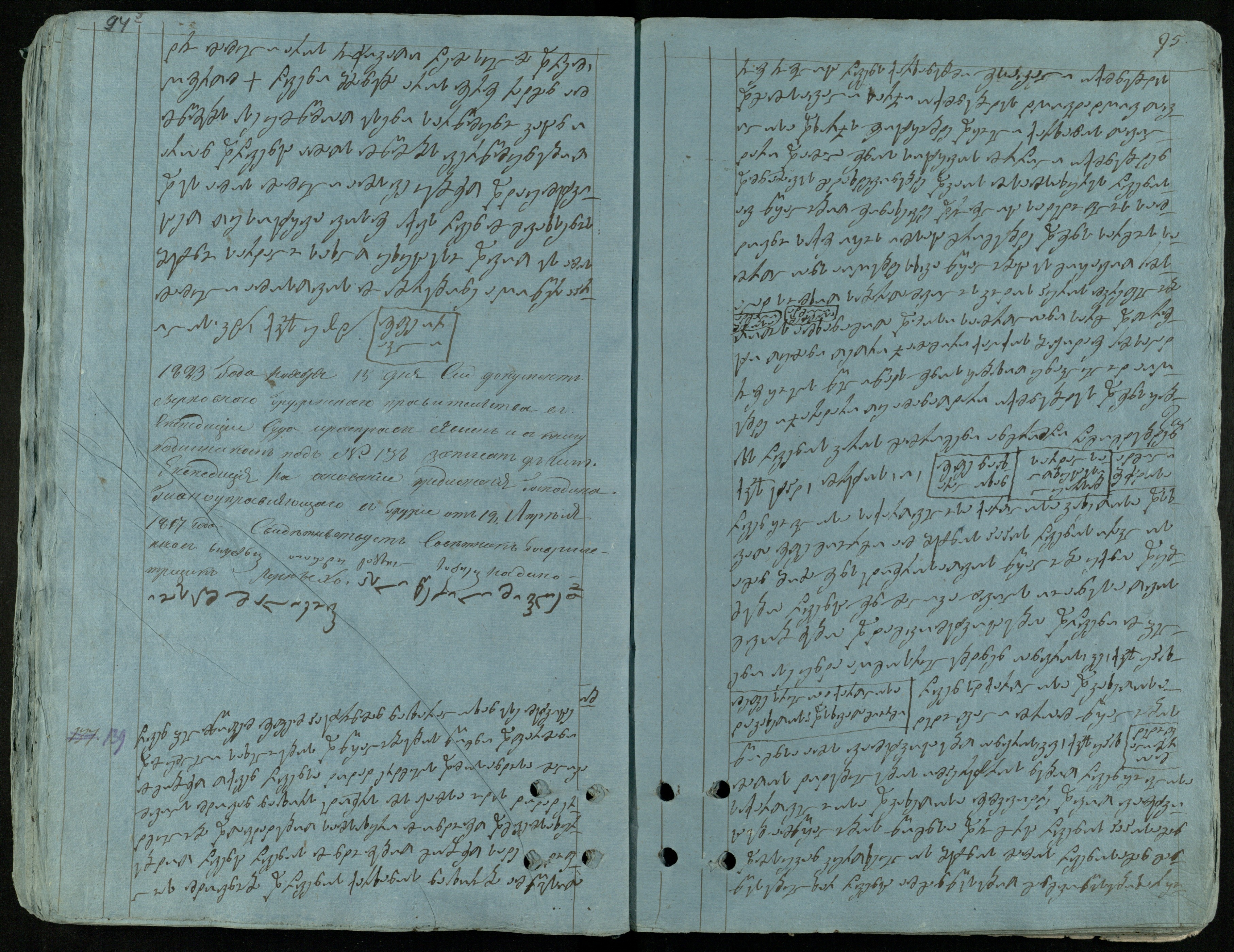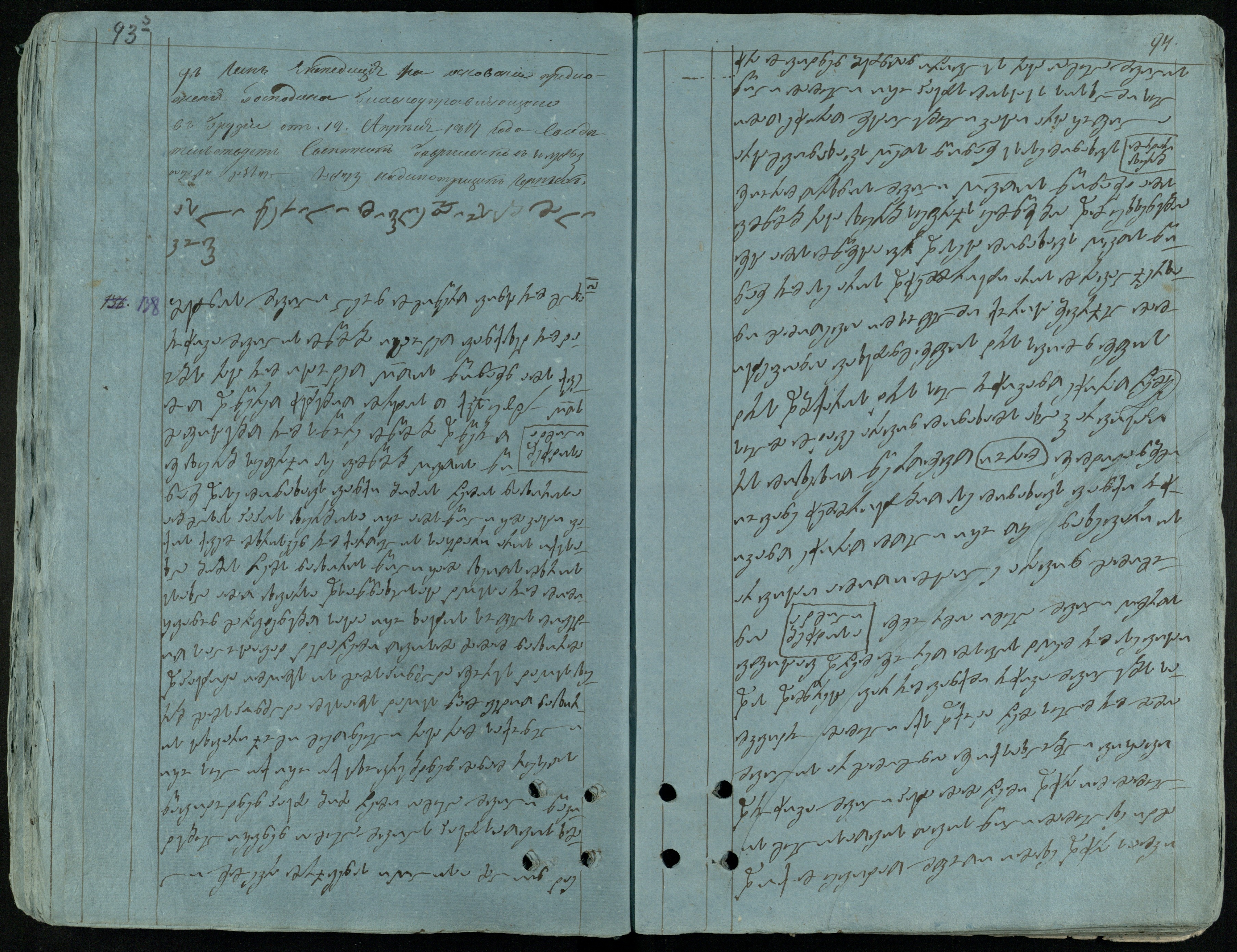 ქაღალდი ცისფერი, დაწერილი შავი მელნით.