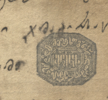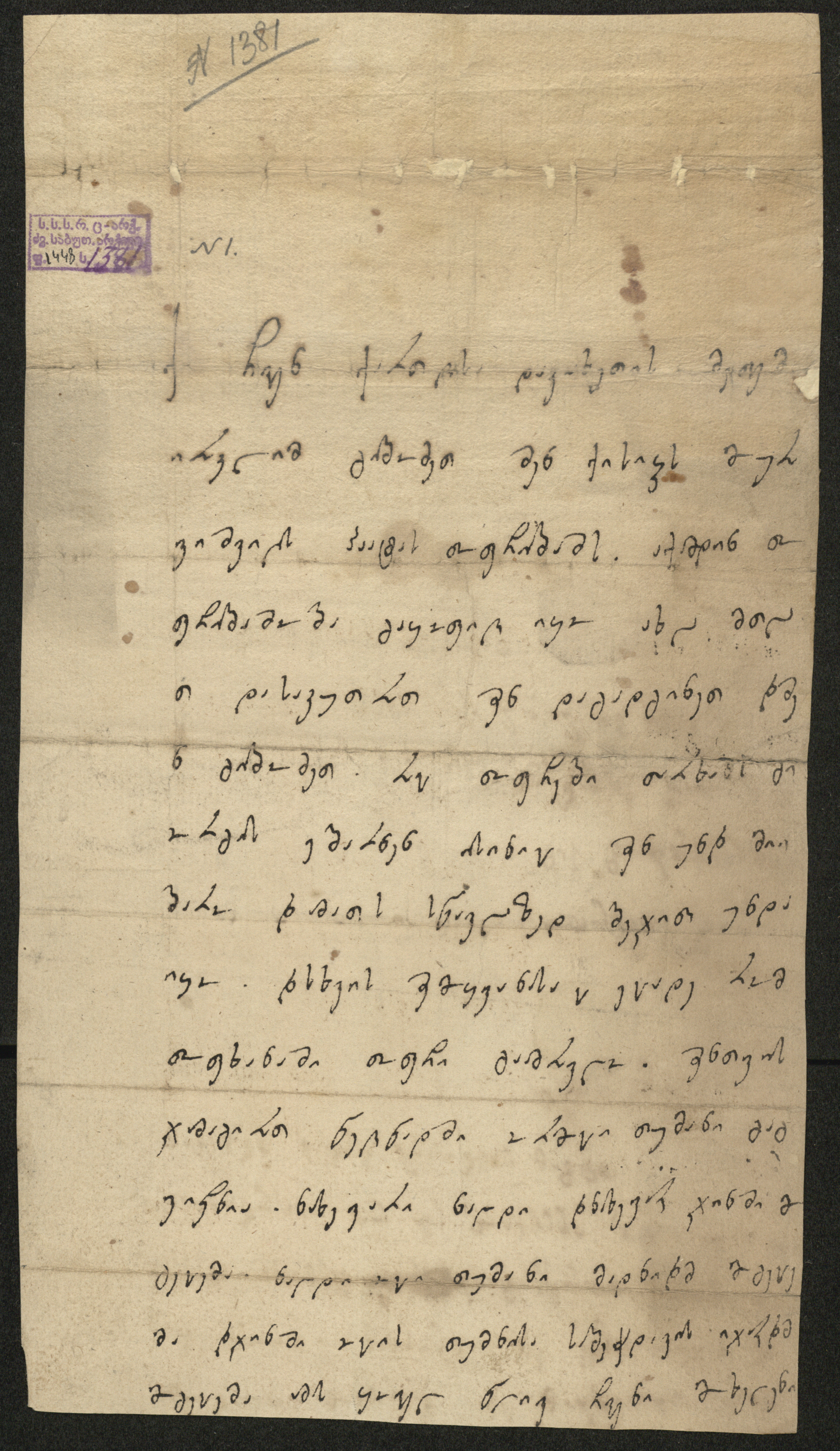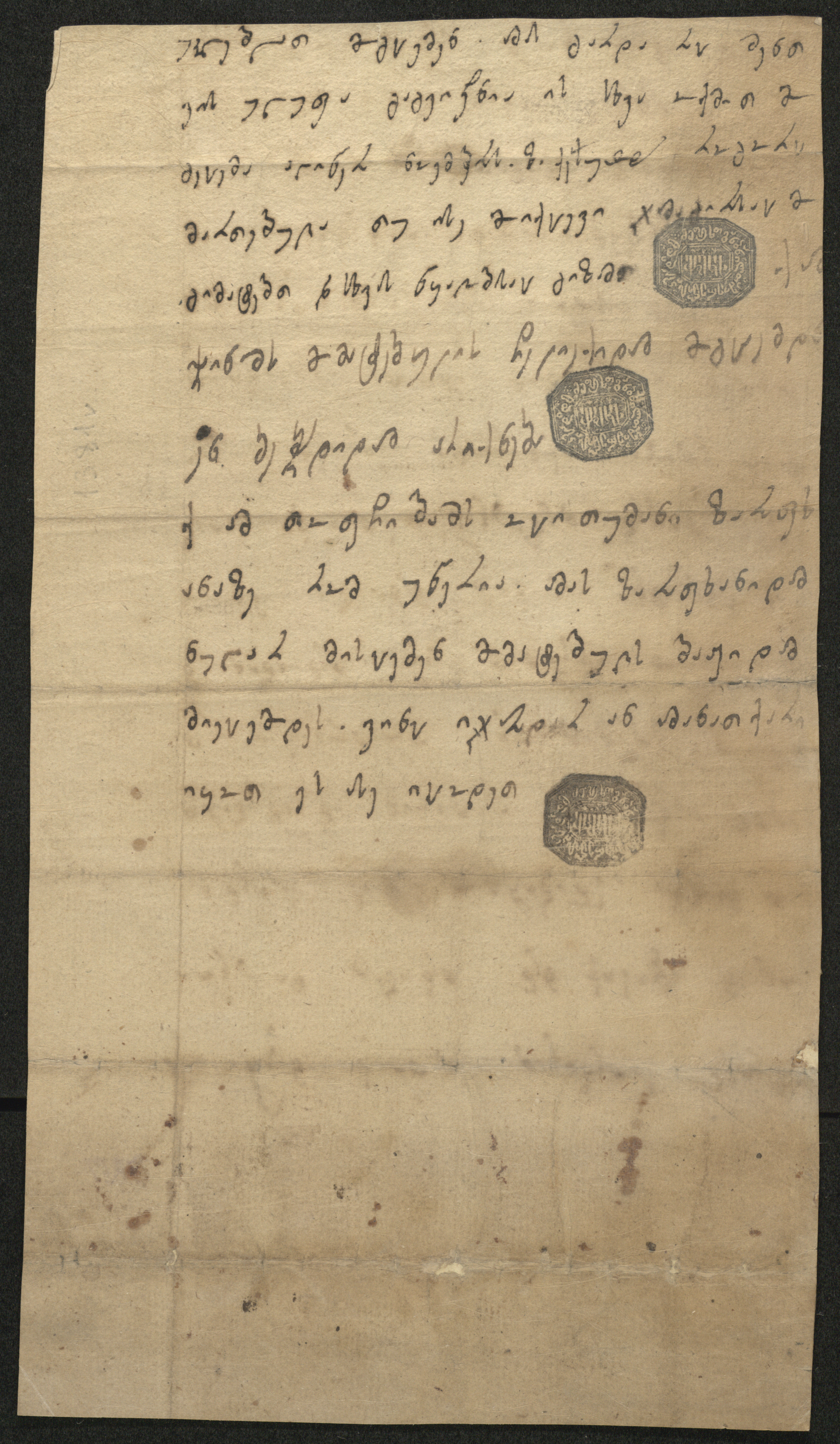 ქაღალდი ნაცრისფერი ყვითელი ლაქებით, დაწერილი შავი მელნით