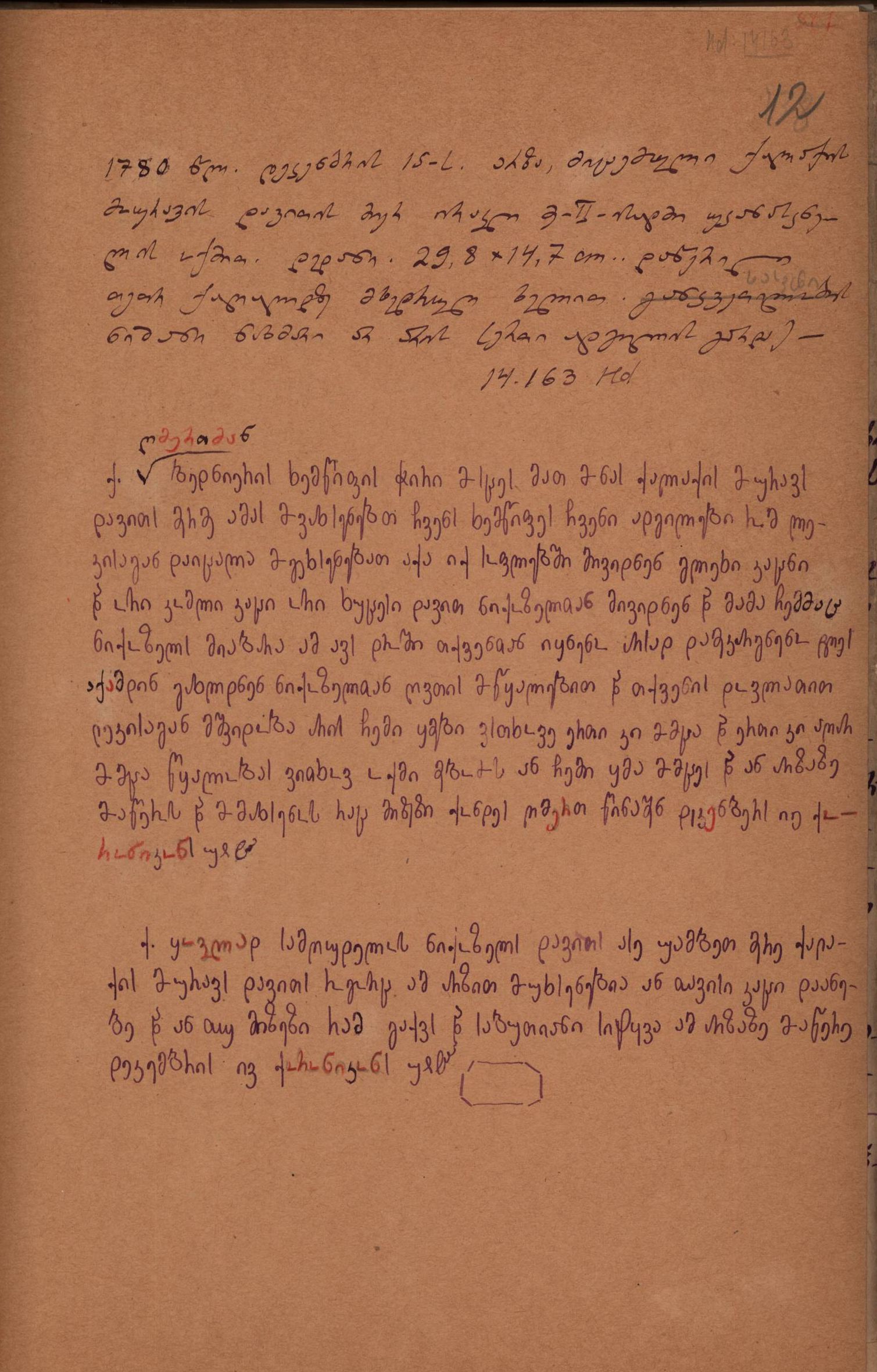1. საბუთი გადაწერილია გიორგი ბოჭორიძის მიერ 1930-1936 წწ.-ში.