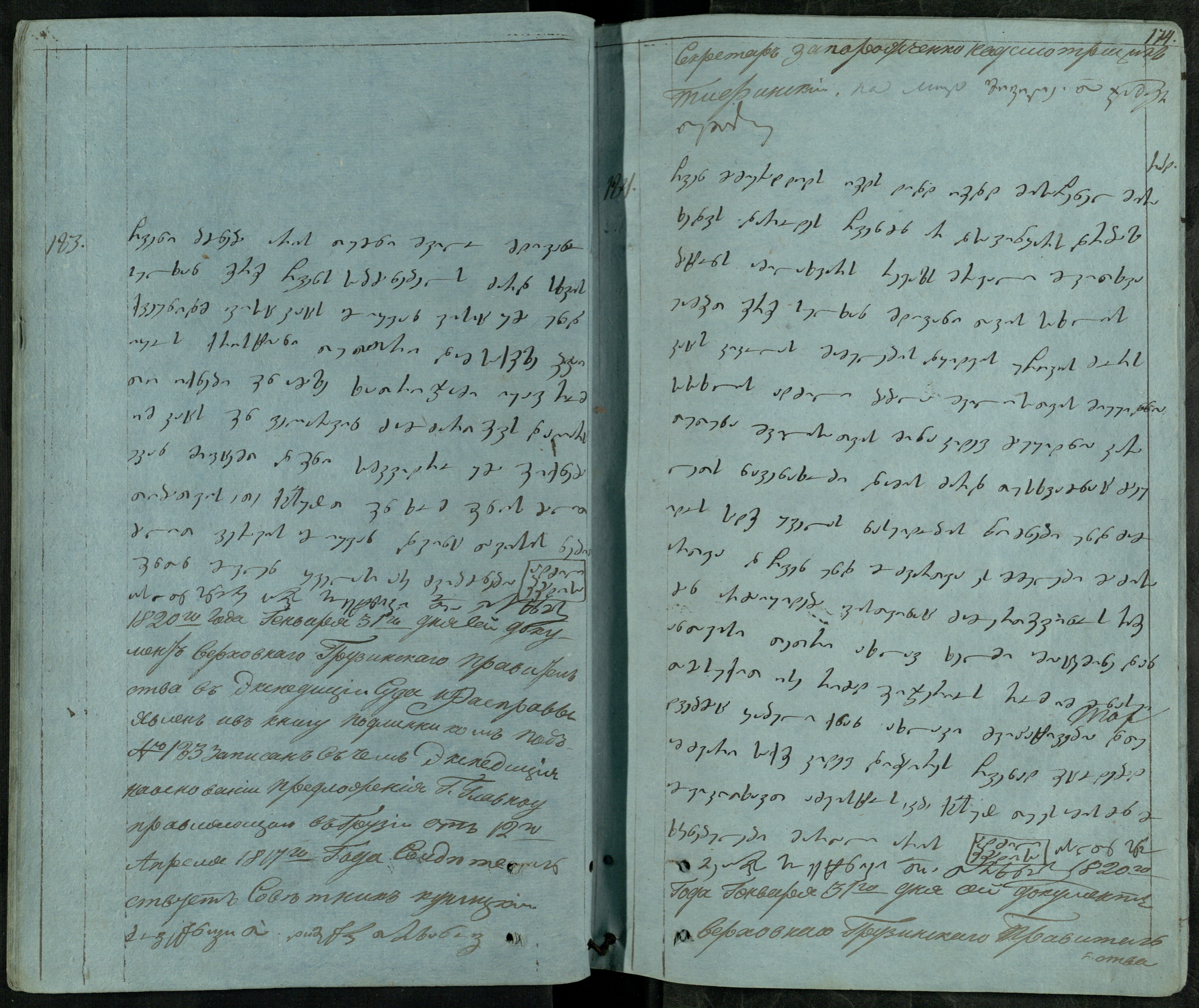 ქაღალდი ცისფერი, დაწერილი შავი მელნით