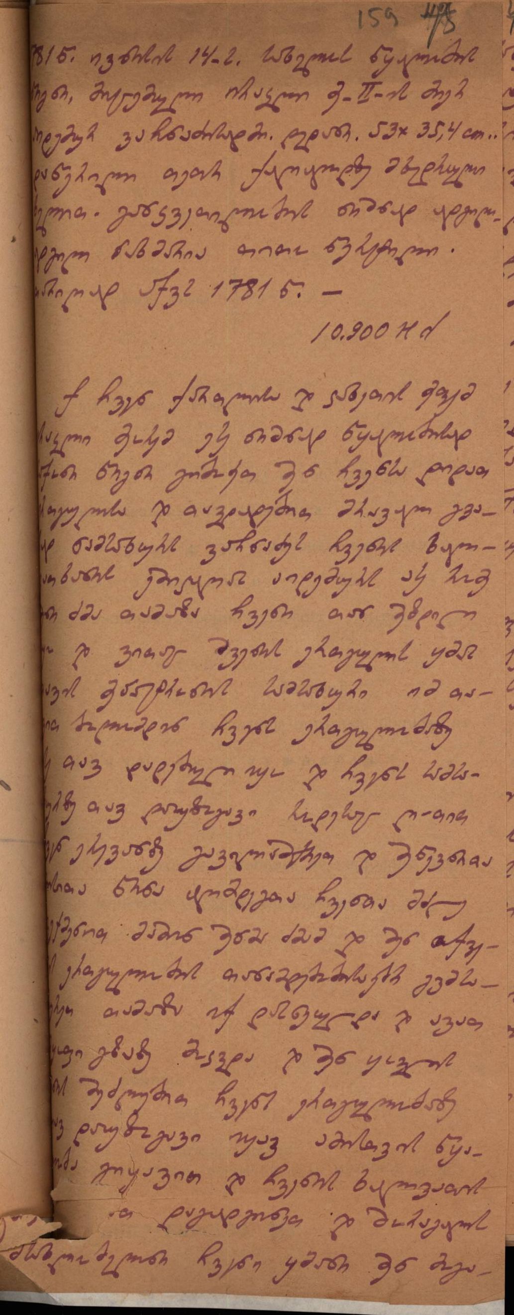 2. დედნის აღწერა გიორგი ბოჭორიძის მიერ: ..დედანი, 53x35,4 cm.. დაწერილი თეთრ ქაღალდზე მხედრული ხელით; განკვეთილობის ნიშნად ადგილ-ადგილ ნახმარია თითო წერტილი".