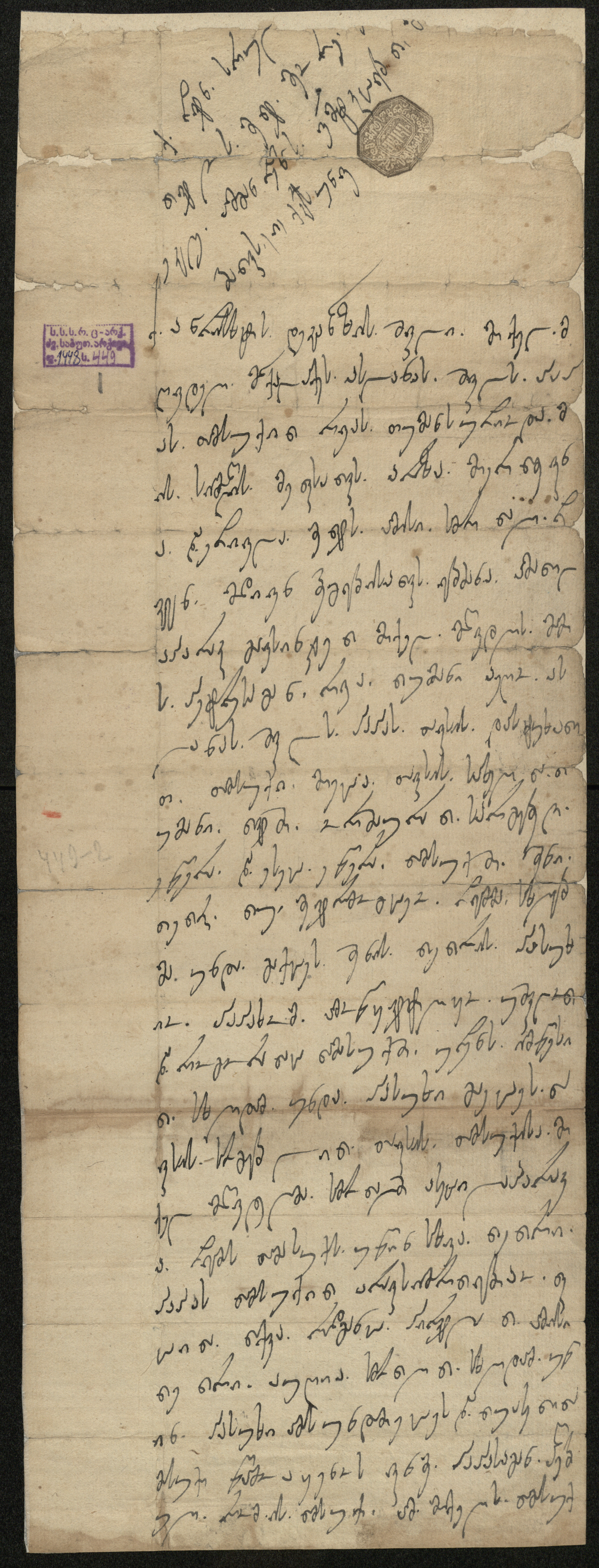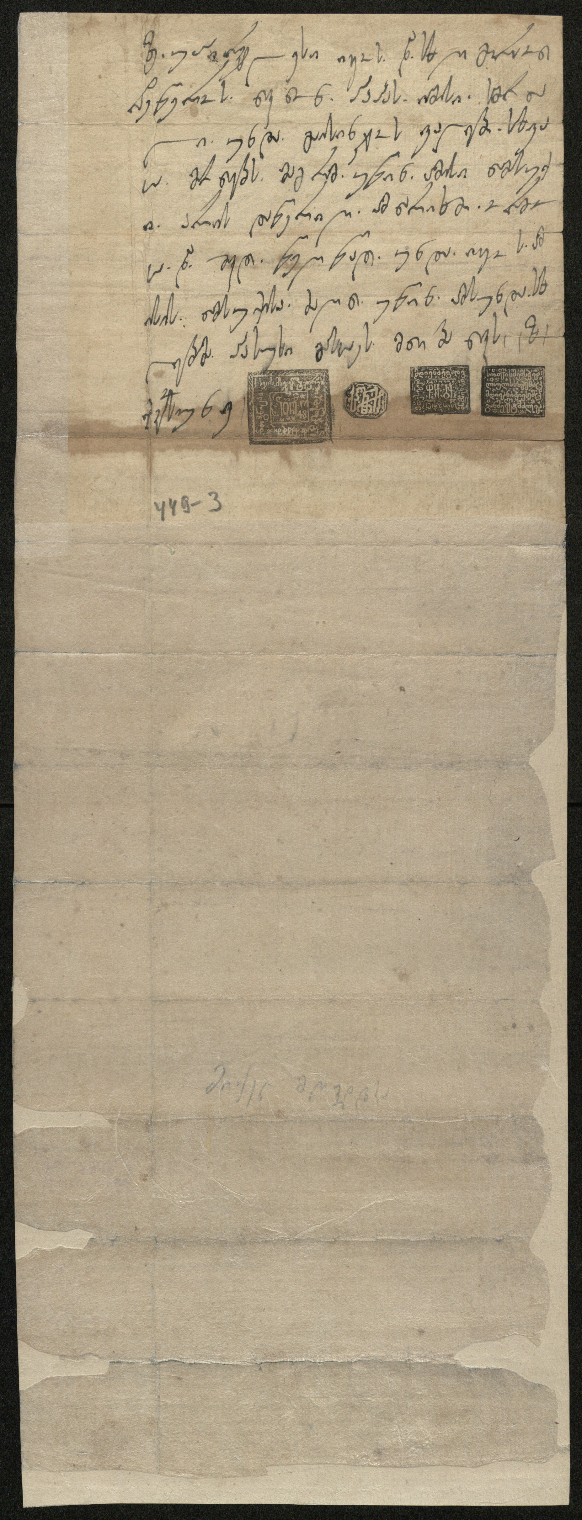 ქაღალდი ღია ყავისფერი, დაწერილი შავი მელნით