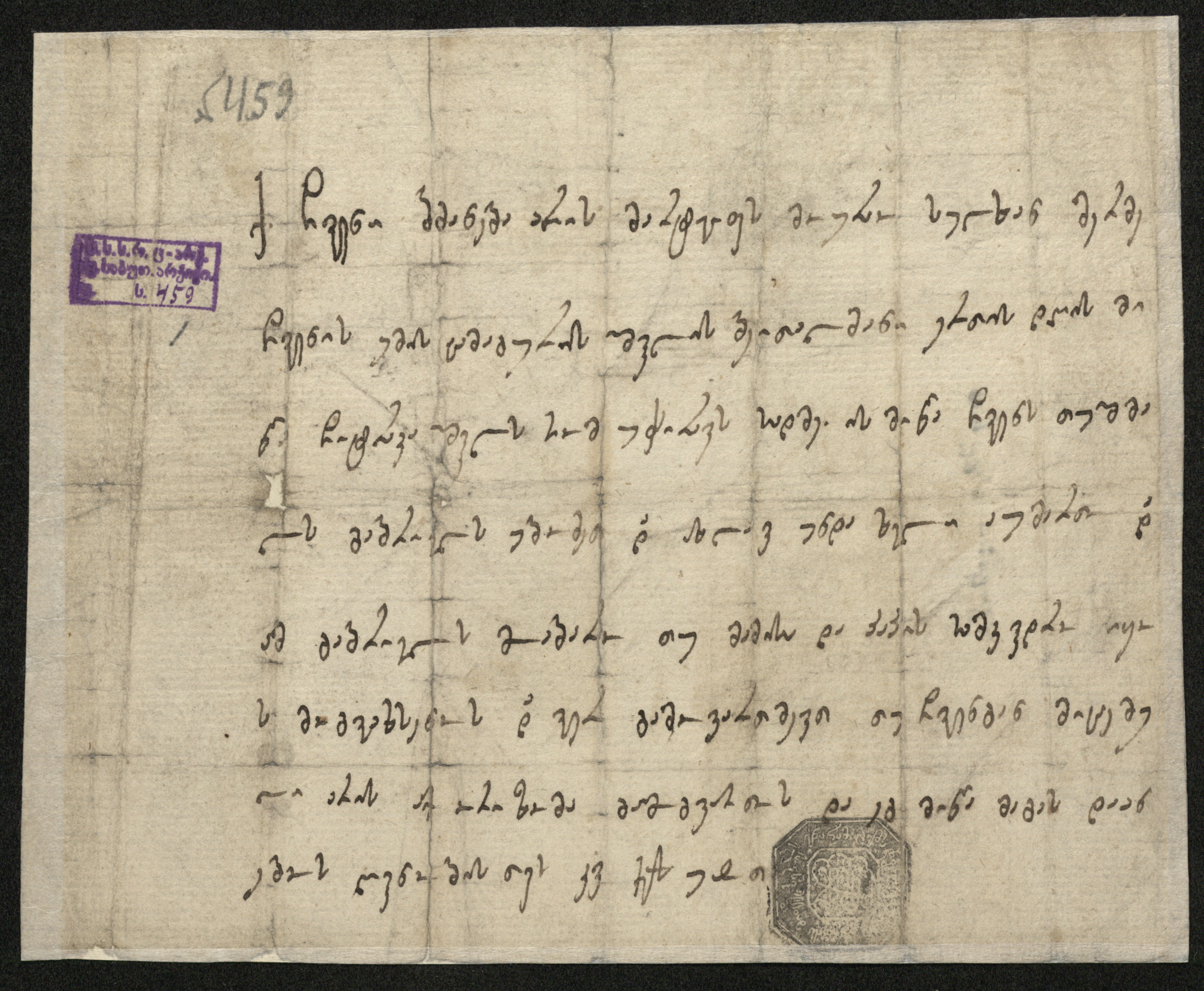 4. მინაწერები v-ზე: ა.) ქ. ეს წიგნები მეფის ირაკლის ოქმებია; ბ.) თუშმალიშვილებისა".
