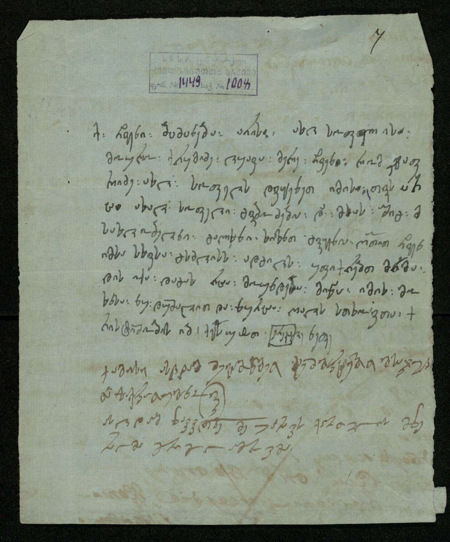 ბ). ,,ასლიდამ წავიკითხე მე უპრავის ქართულის მწერალმა გრიგოლ ამიროვმა“.