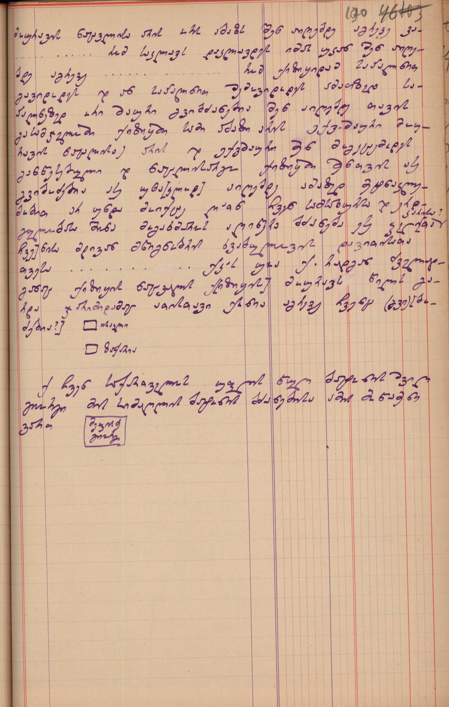 მოყვითალო ქაღალდი წითელი და ლურჯი ჰორიზონტალური ხაზებით, დაწერილი ლურჯი მელნით