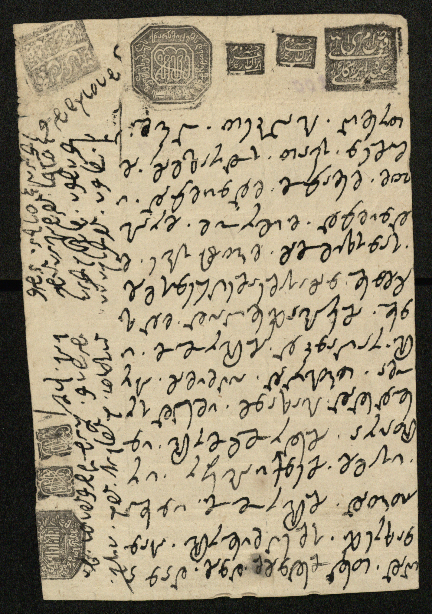 1. ავტოგრაფი, ახლავს რვა ბეჭედი ერეკლე II-ის: ოთხი ქართული და ოთხი სპარსული.