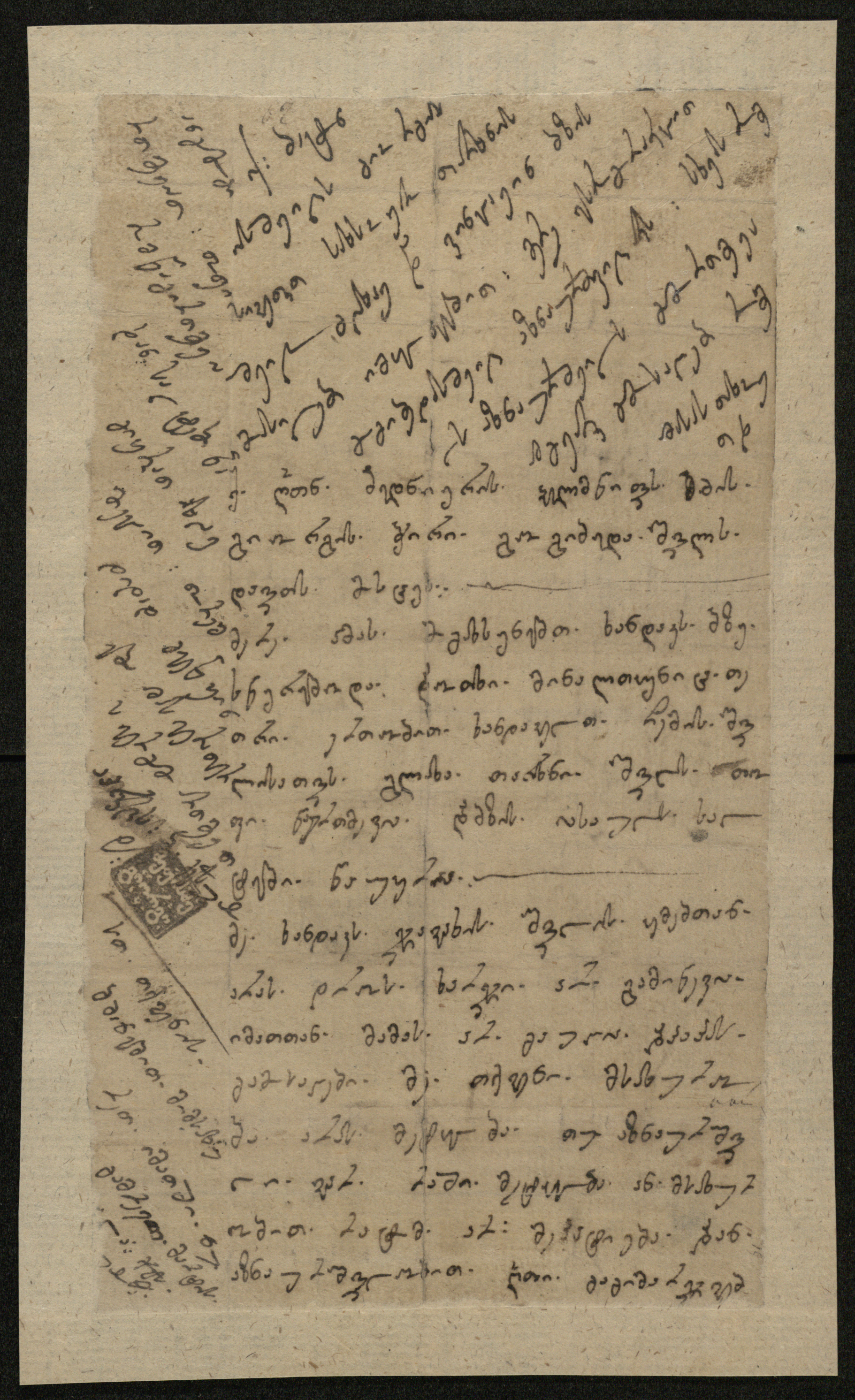 ქაღალდი ღია ყავისფერი, დაწერილი შავი და ყავისფერი მელნით