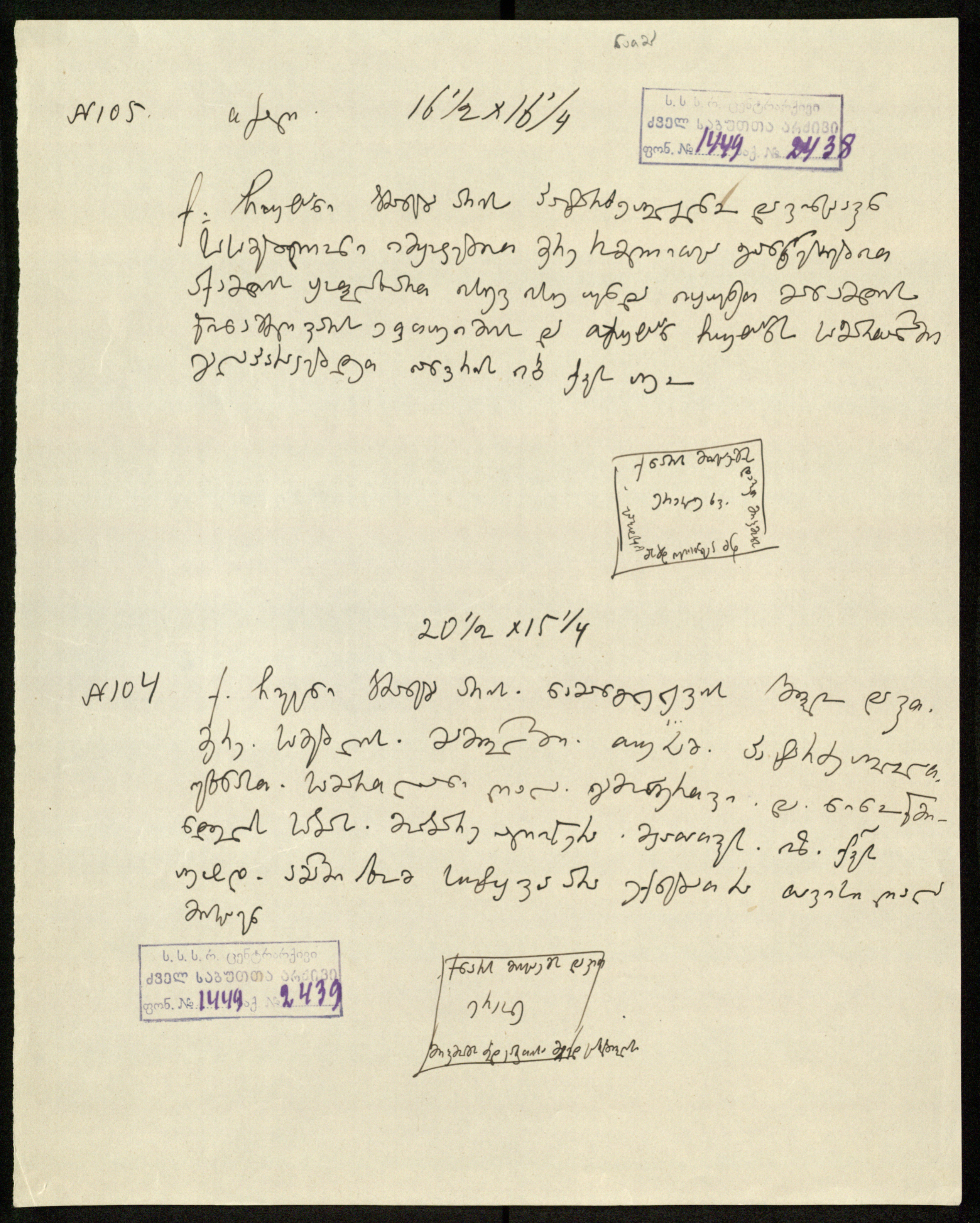 2. დედნის აღწერა სარგის კაკაბაძის მიერ: ,, საბუთის დედნის ზომა: ,,თ. ქაღ. 161/2X161/4 “ და ძველი საარქივო-სააღრიცხვო ნომერი:=10.