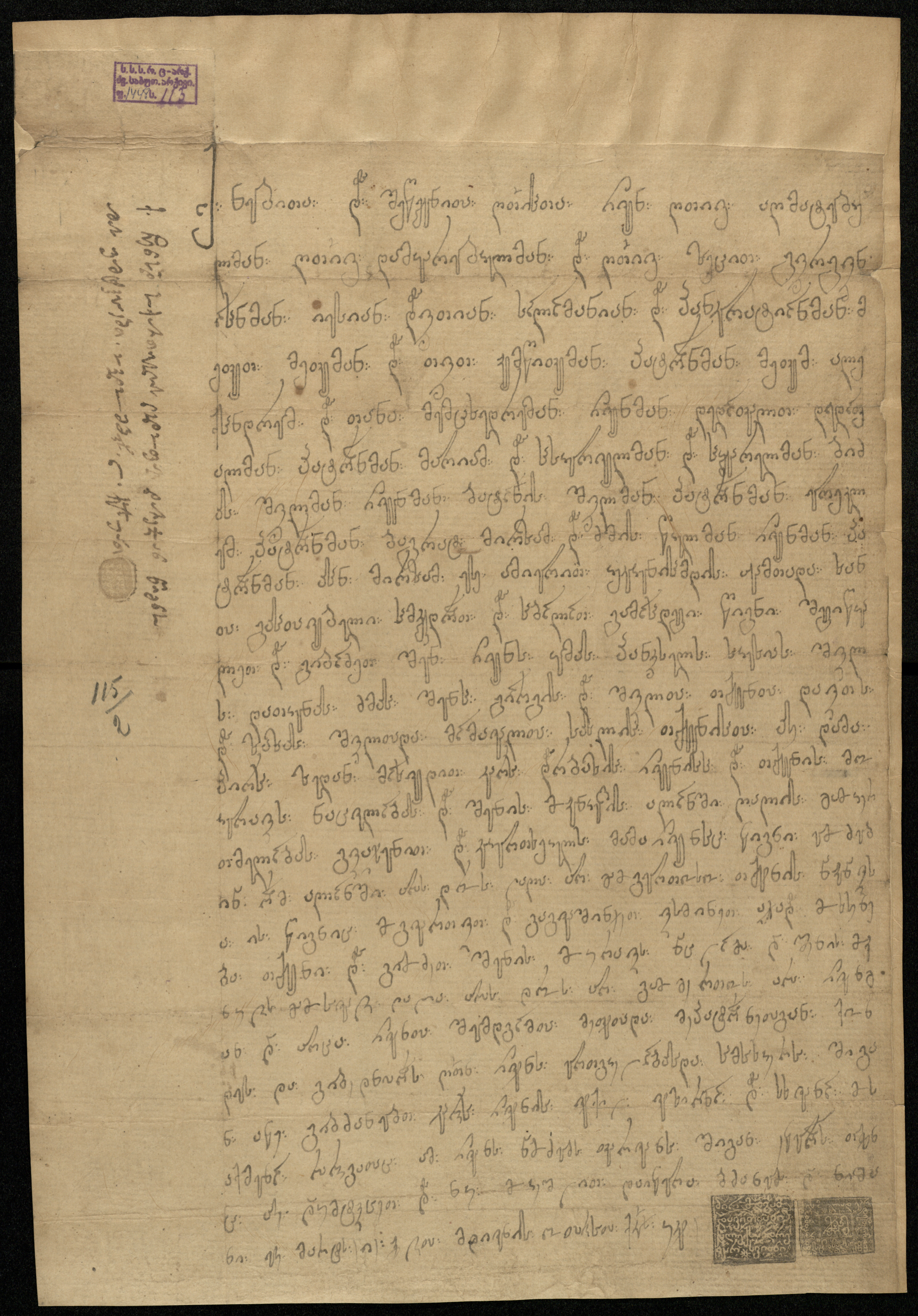 ჭვირნიშნიანი ქაღალდი ღია ყავისფერი, შესრულებული შავი მელნით
