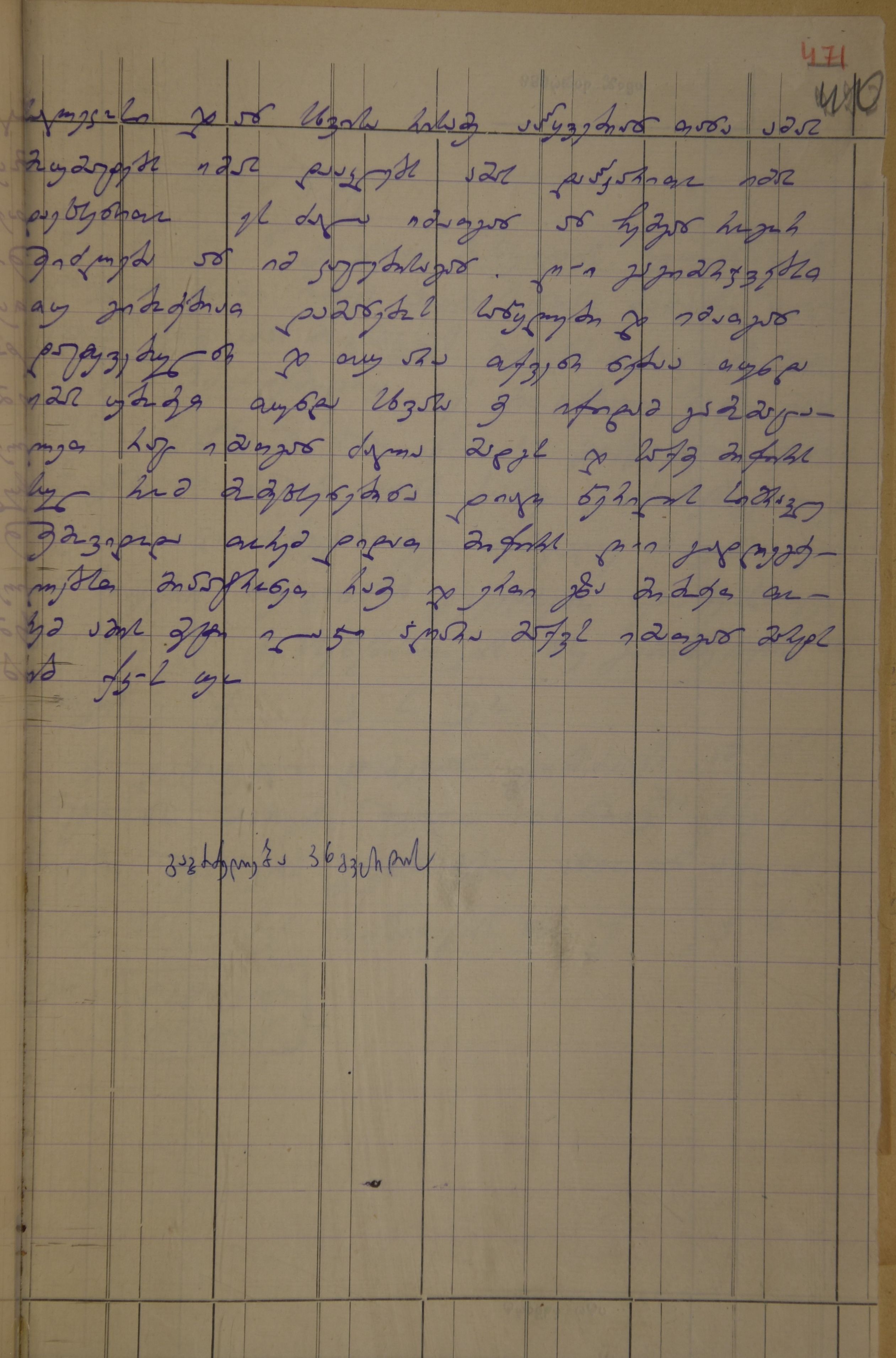 ქაღალდი თეთრი დახაზული შავი ხაზებით, დაწერილი ლურჯი მელნით