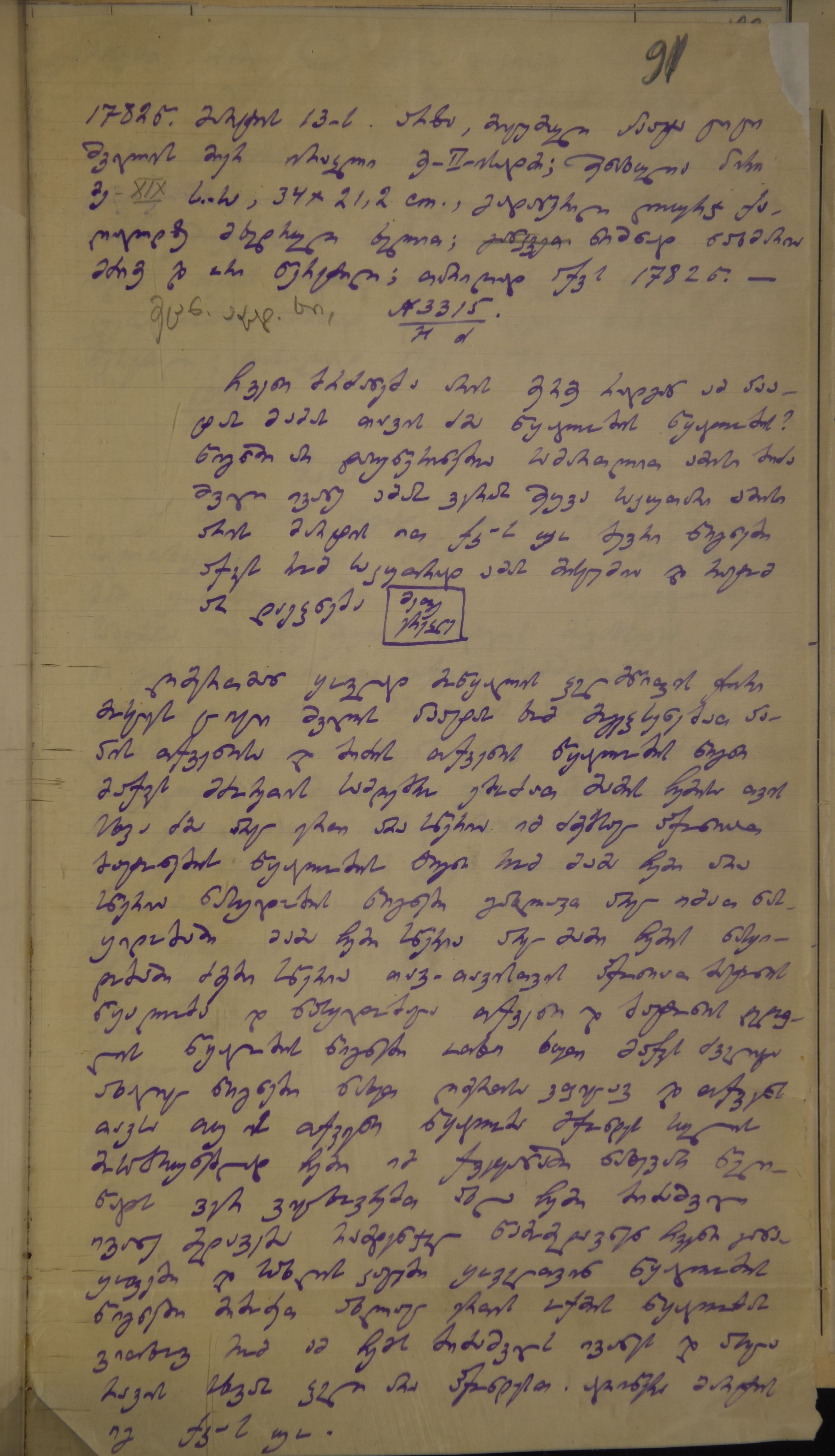 2. პირის აღწერა გ. ბოჭორიძის მიერ: ,,პირი XIX ს-ის, 34X21,2; გადაწერილი ლურჯ ქაღალდზე მხედრული ხელით; განკვეთილობის ნიშნად ნახმარია მძიმე და ორი წერტილი".