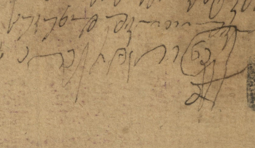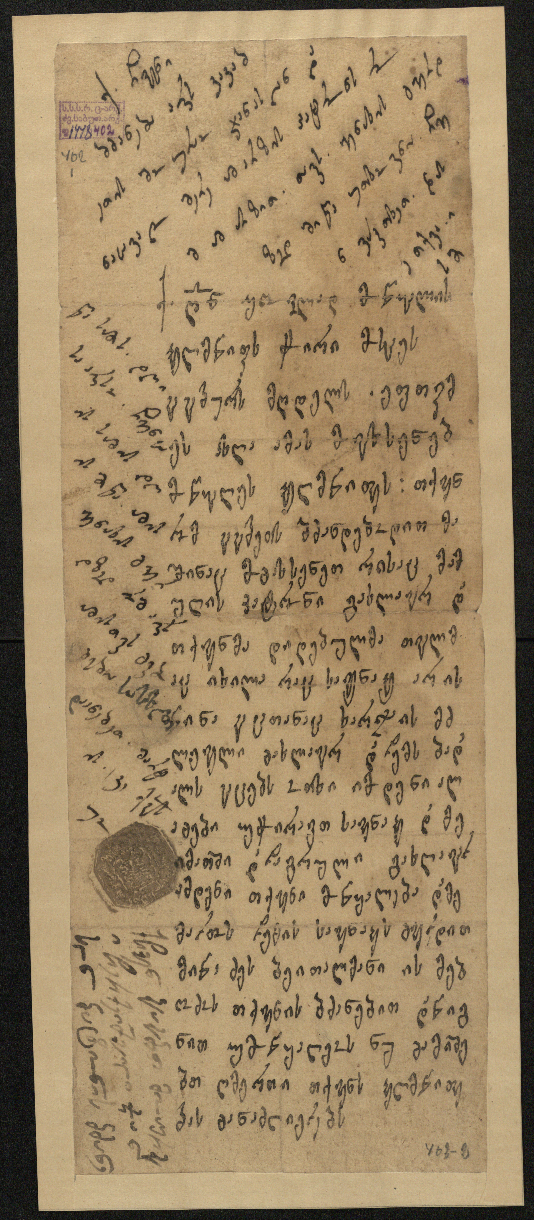 ჭვირნიშნიანი ქაღალდი ყავისფერი, დაწერილი შავი და ყავისფერი მელნით