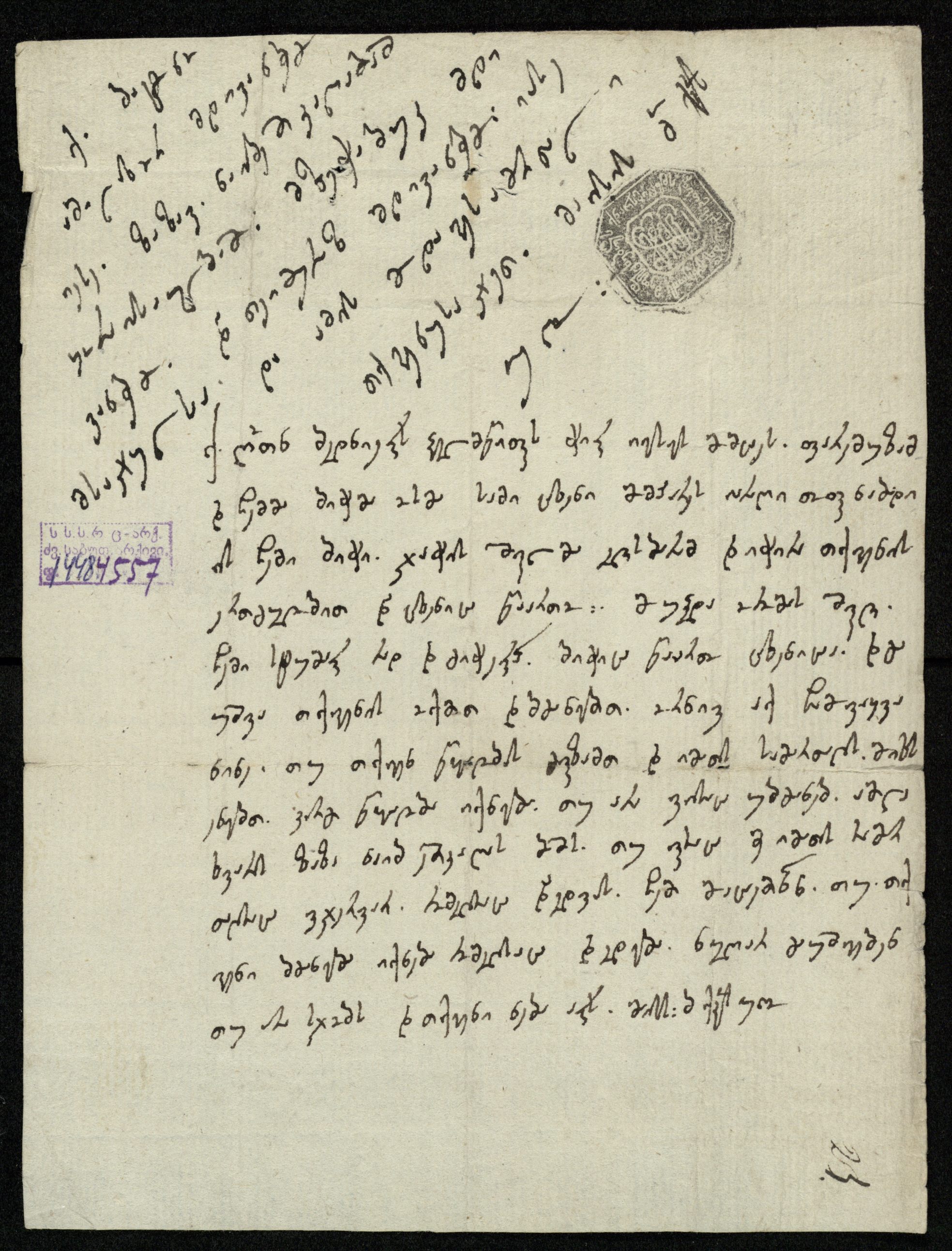 ჭვირნიშნიანი ქაღალდი თეთრი, დაწერილი შავი მელნით