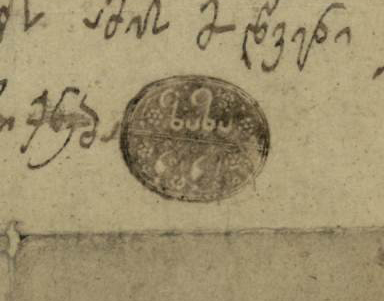 2. საბუთის თავში აქვს დიდი ზომის ქანწილი შესრულებული შავი მელნით.