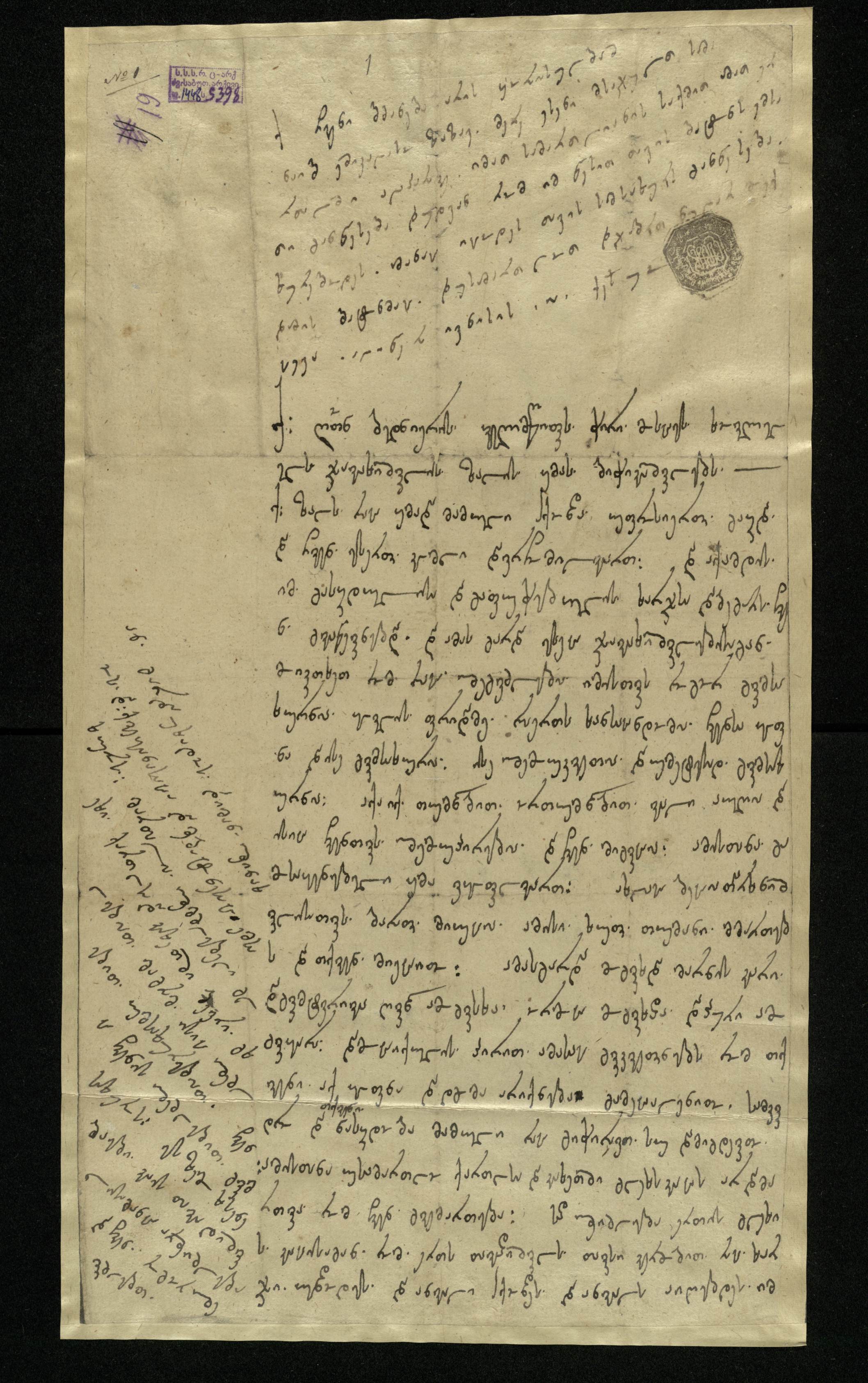 1. V-ზე ახლავს ბარათი ნაიბეშიკაღასბაშ-ყორიასაულბაშ ზაზასი თარხნიშვილისადმი, სასამართლოში მოდავეების სასწრაფოდ მოყვანის შესახებ.