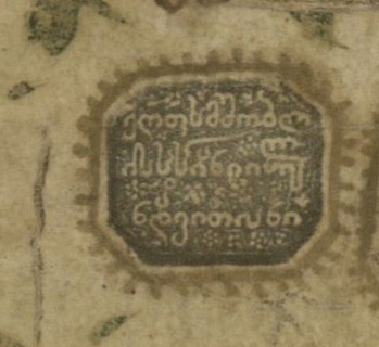 1. ტექსტი ჩაწერილია ფერად დეკორატიულ ხაზებს შუა, ზედა და მარჯვენა არე მოხატულია ფერადი ყვავილოვანი ორნამენტით, ჭარბობს მწვანე ფერი. ბეჭდები ჩასმულია ოქროს ვარაყში.