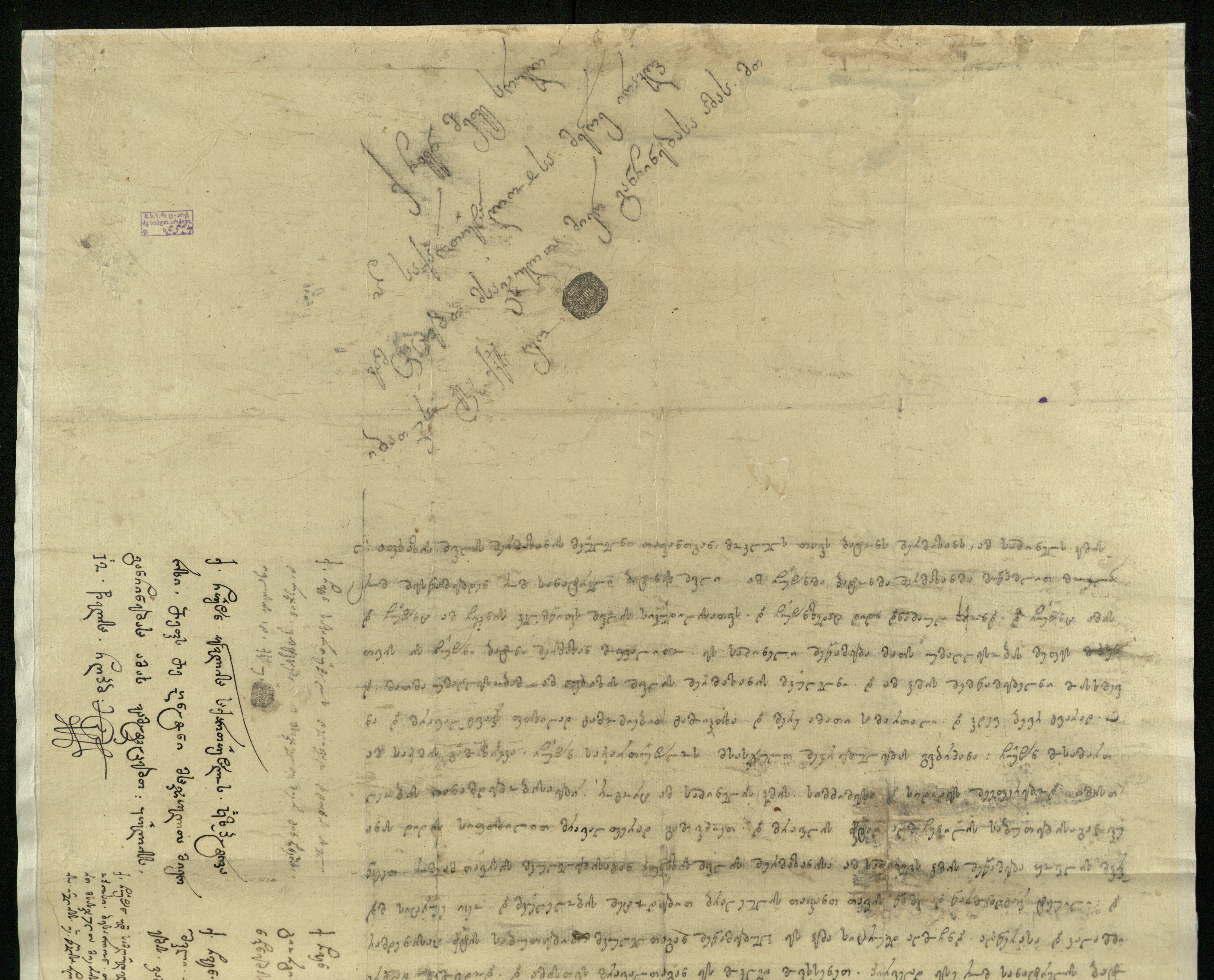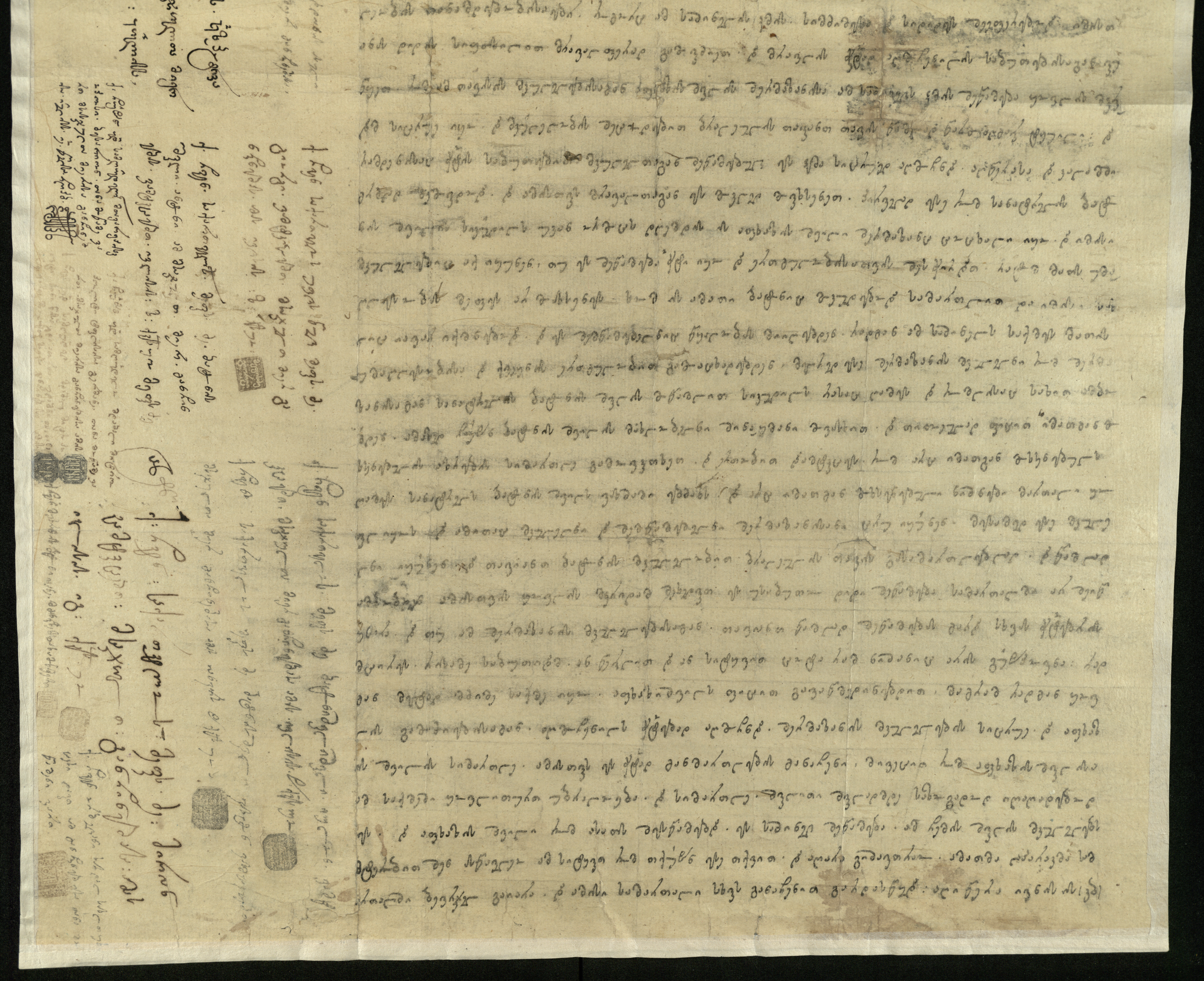 ქაღალდი ყვითელი, დაწერილი შავი და ყავისფერი მელნით
