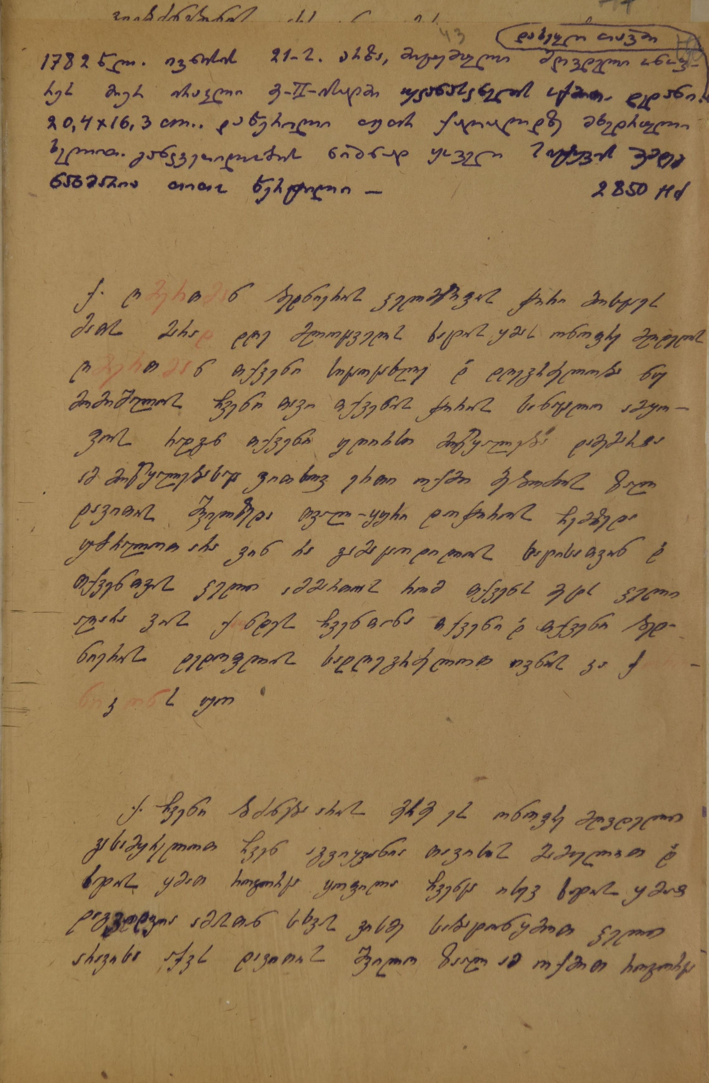 ქაღალდი ყვითელი, დაწერილი ლურჯი და წითელი მელნით