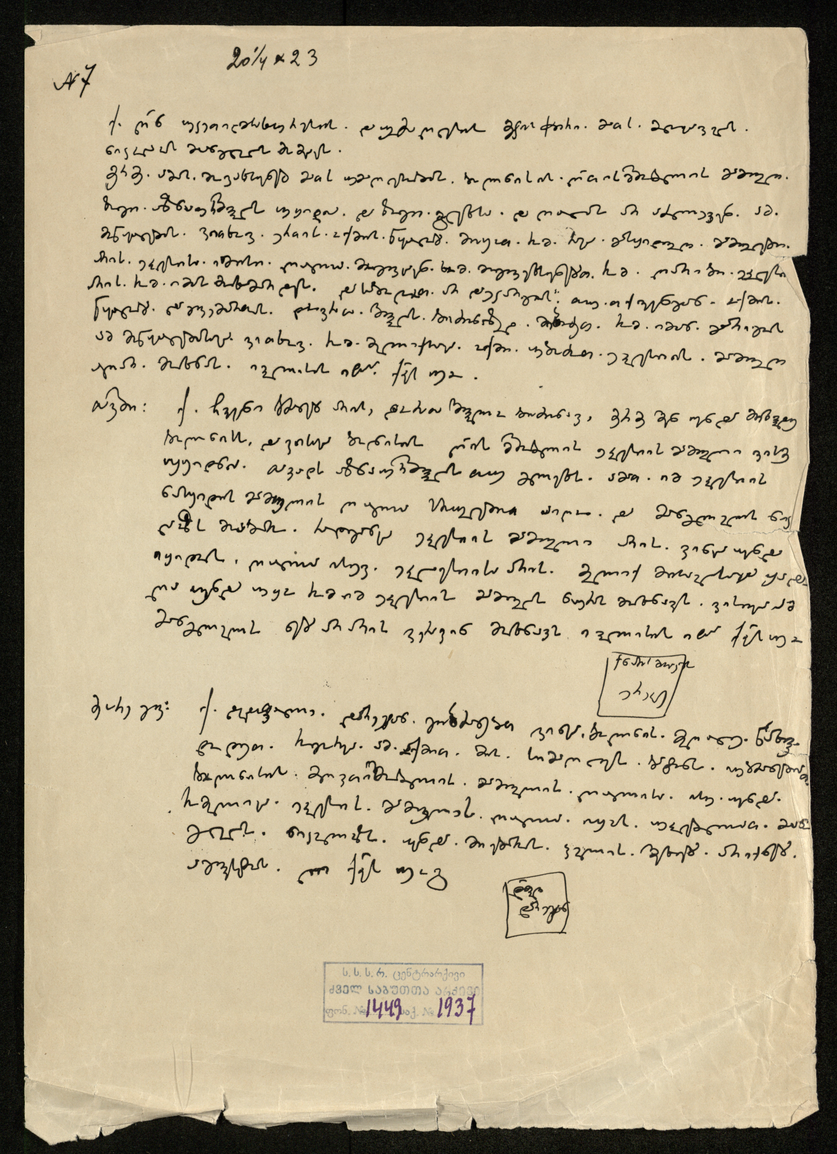 2. სარგის კაკაბაძეს მითითებული აქვს საბუთის დედნის ზომა: 201/4X23 და ძველი საარქივო-სააღრიცხვო ნომერი:N7.