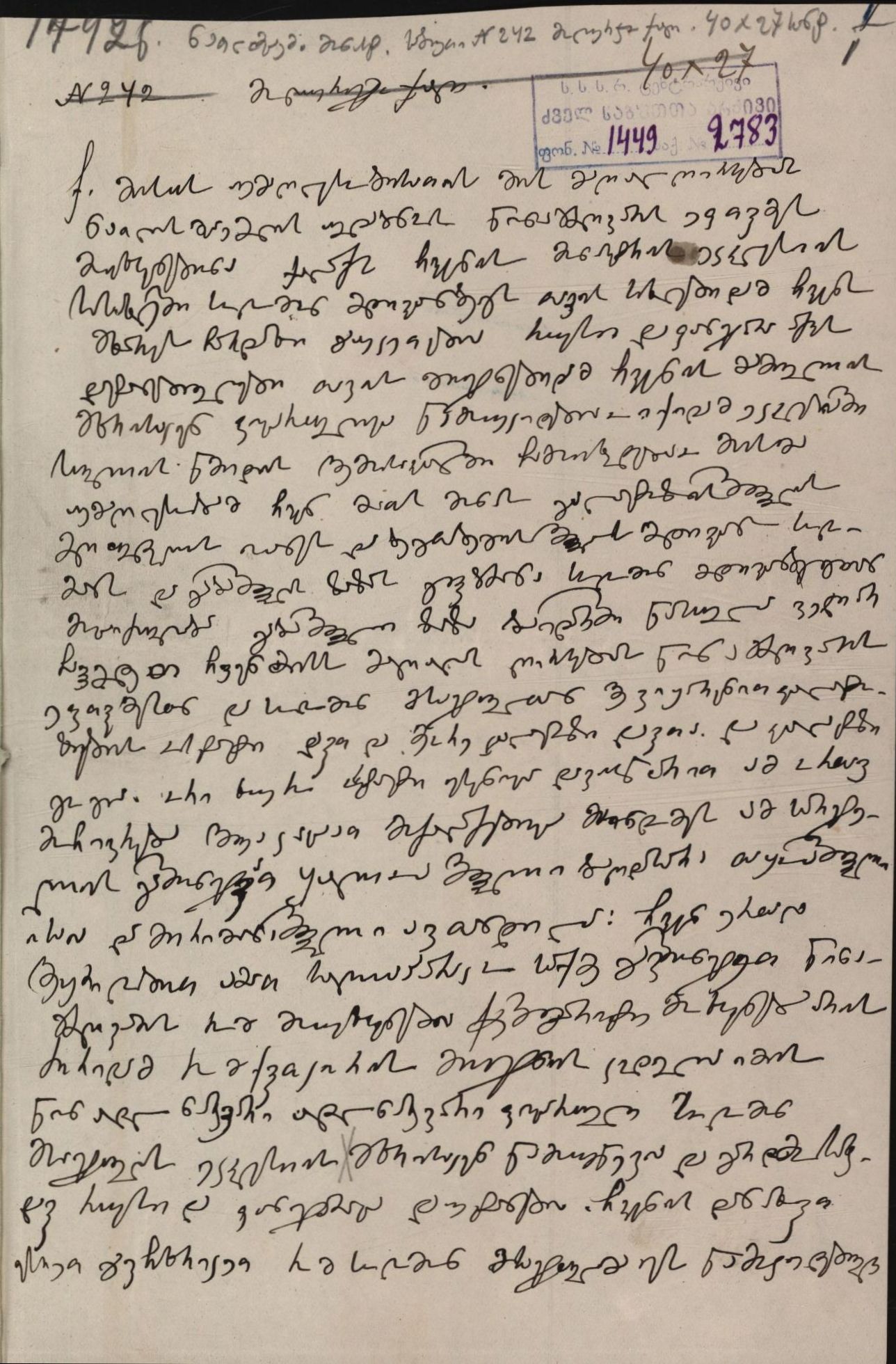 2. საბუთი გადაწერილია სარგის კაკაბაძის მიერ XX ს-ის დასაწყისში.