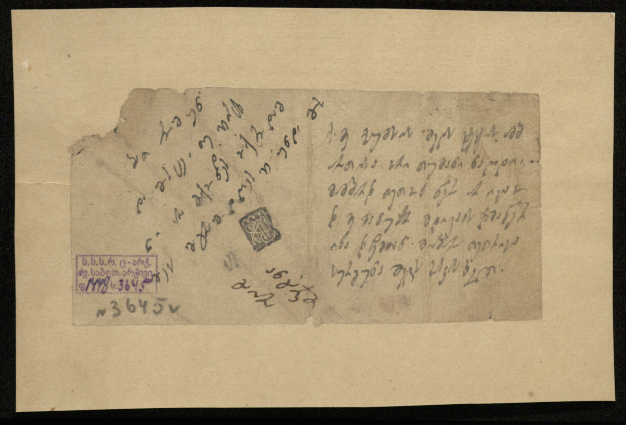 ქაღალდი ყავისფერი, დაწერილი შავი მელნით.