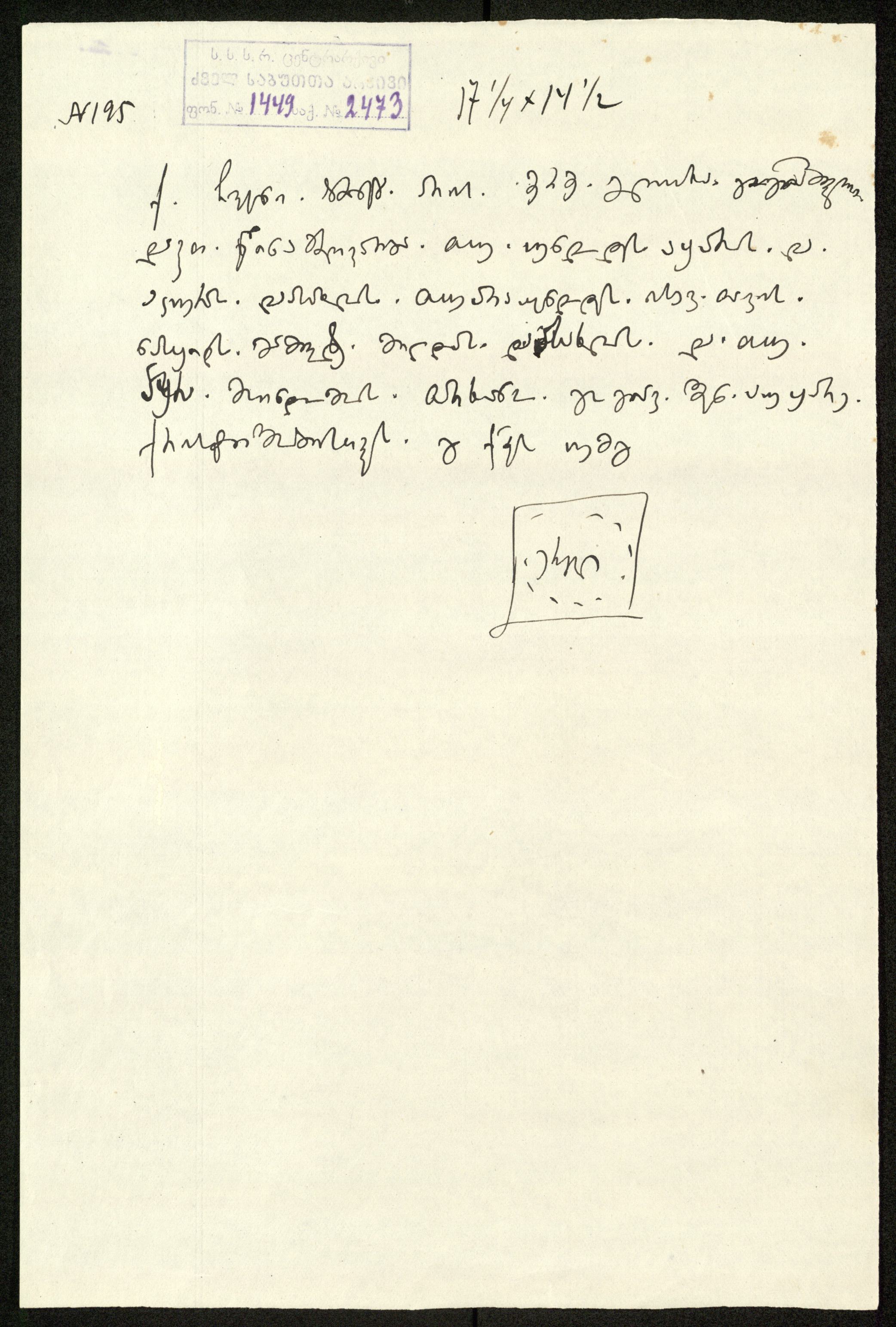 სარგის კაკაბაძეს მითითებული აქვს დედნის ზომა: 171/4X141/2 და ძველი საარქივო-სააღრიცხვო ნომერი N195.