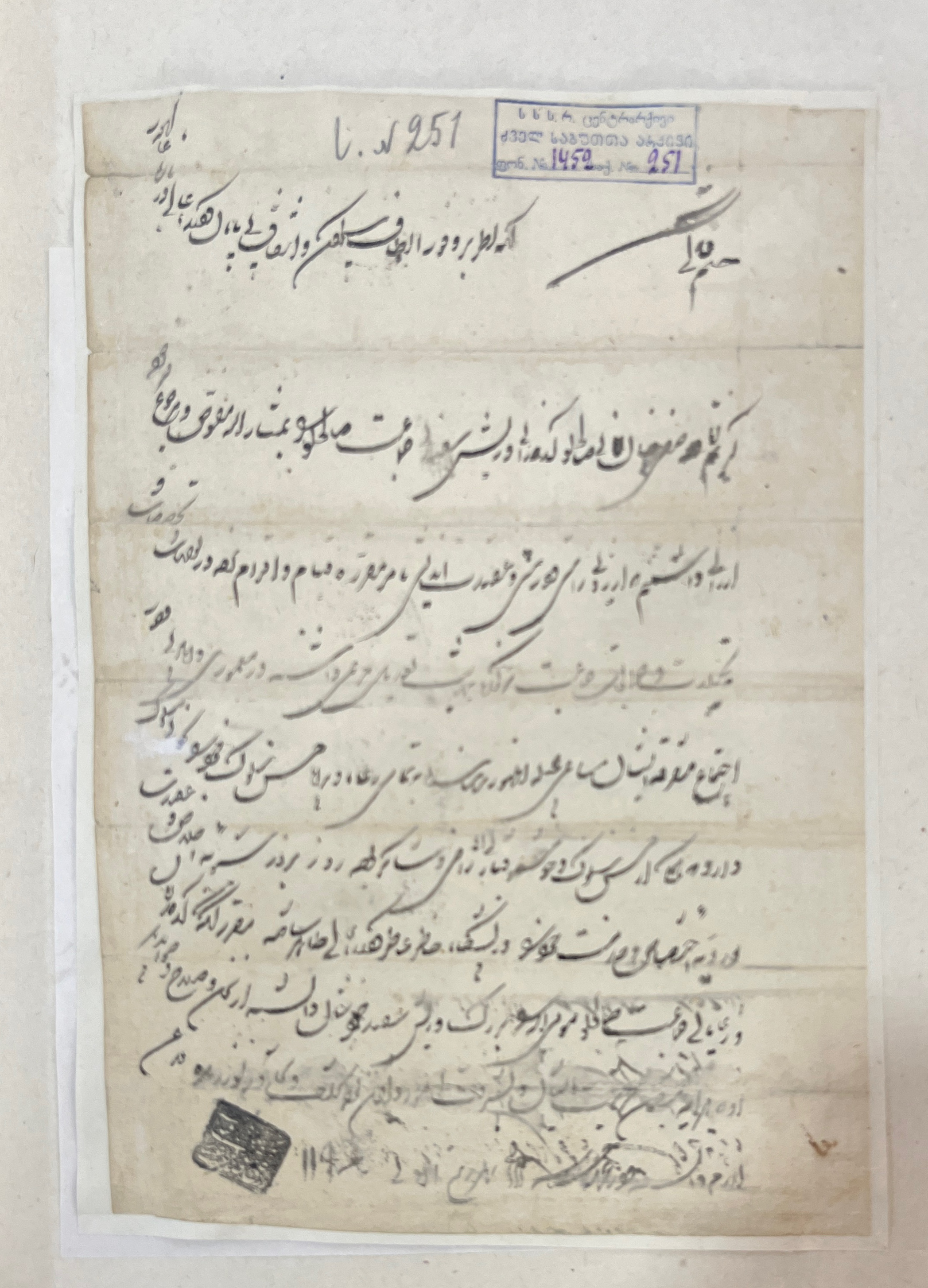 1. საბუთი შედგენილია სპარსულ ენაზე, დამწერლობა შიქასთუ.