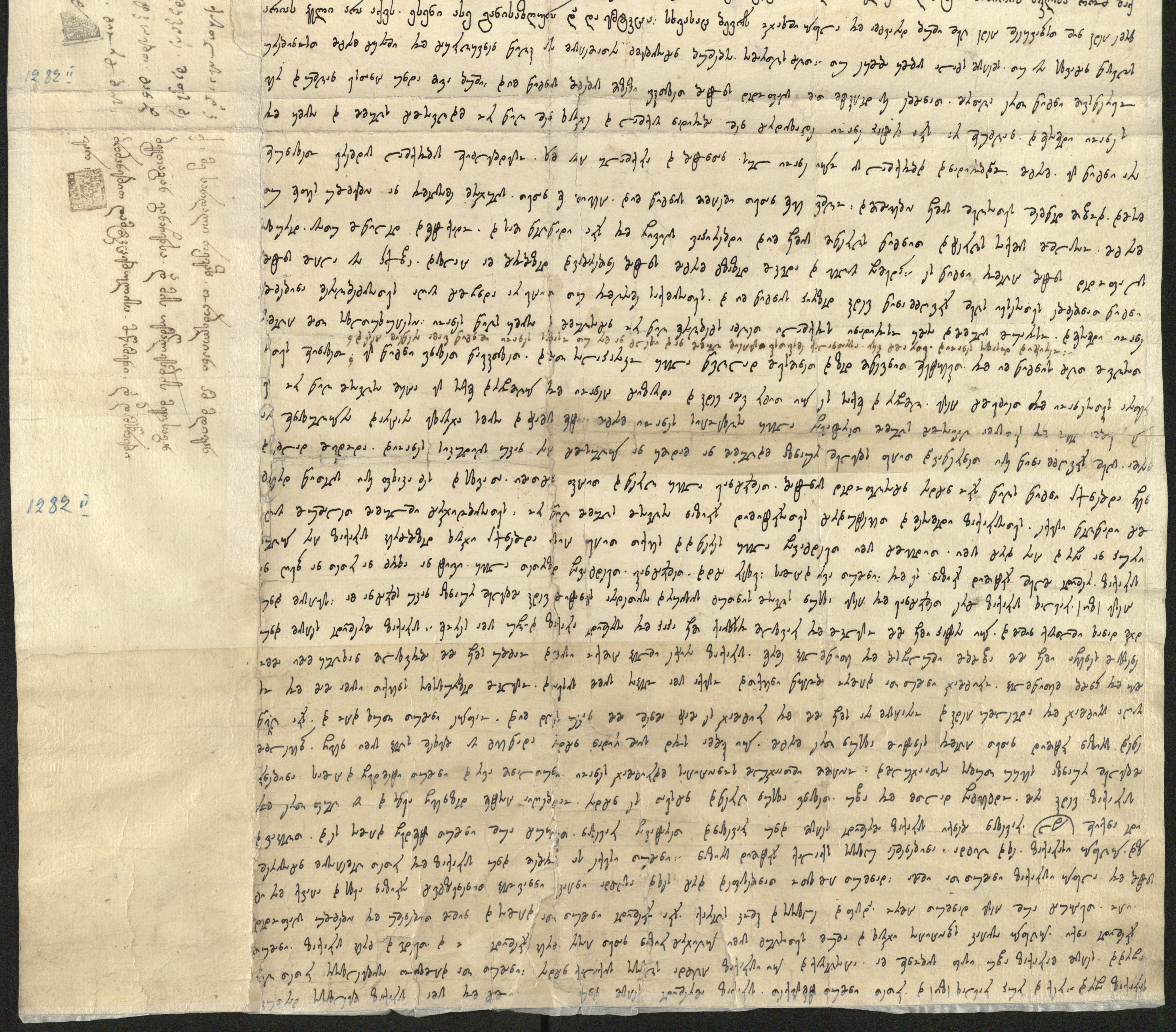 ქაღალდი ყვითელი, დაწერილი შავი და ყავისფერი მელნით