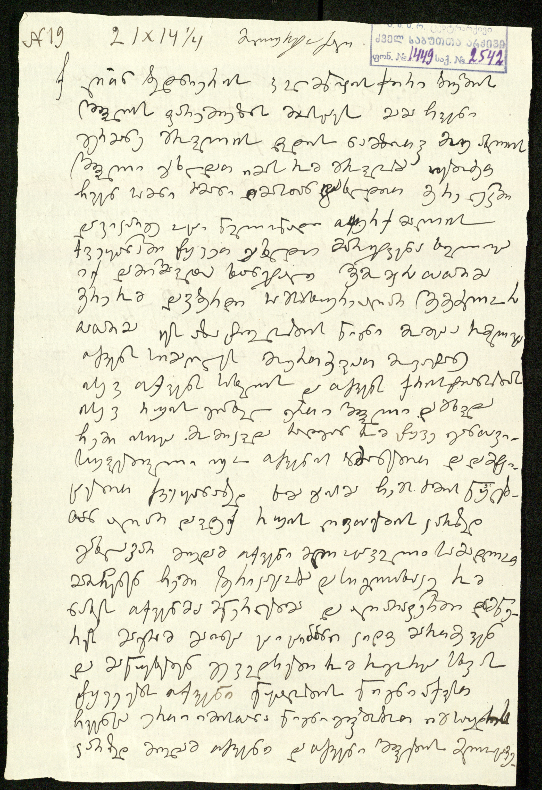 2. სარგის კაკაბაძეს მითითებული აქვს საბუთის დედნის ზომა და აღწერილობა: ,,21X14¾, მოლურჯო ქაღ.“.