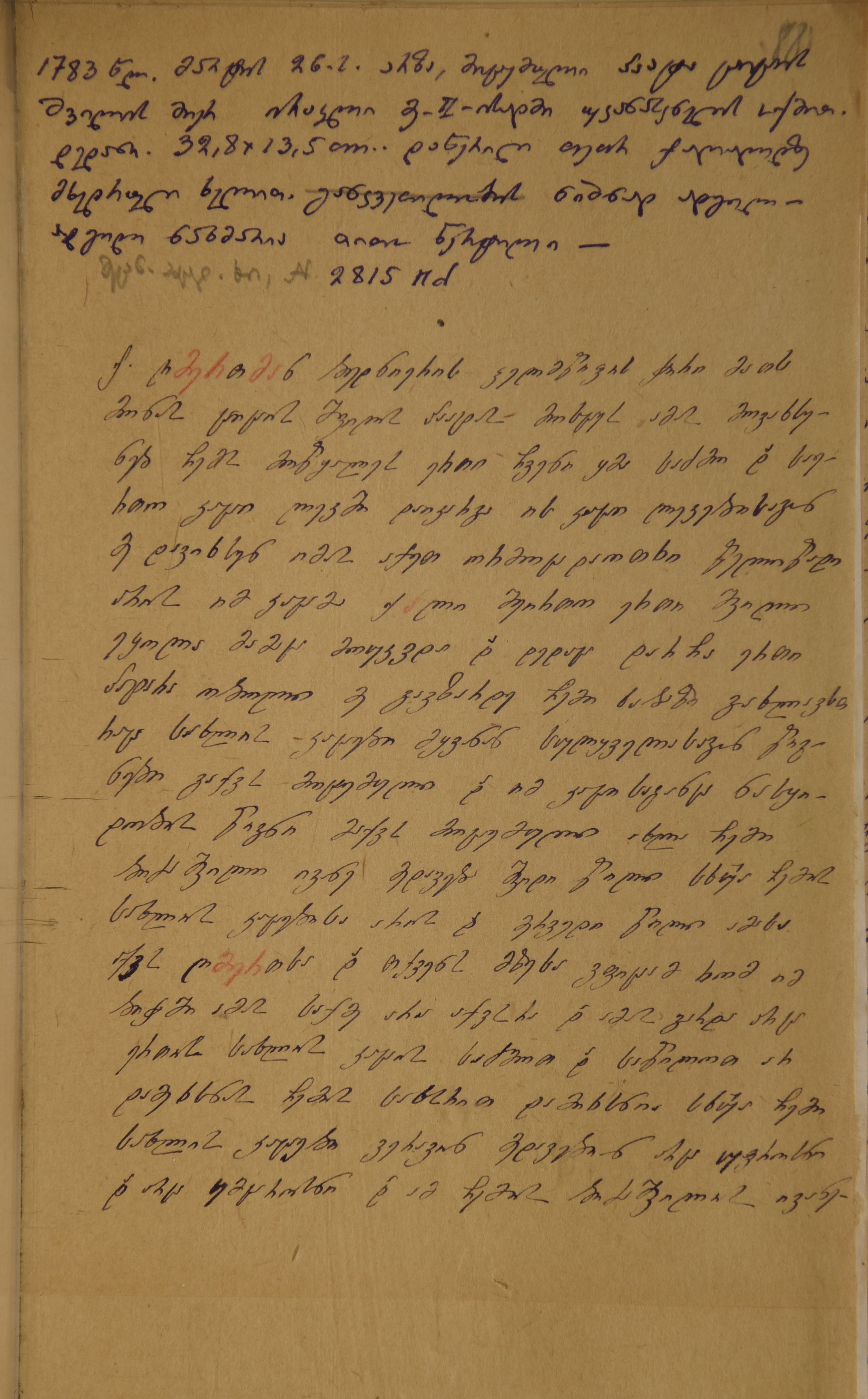 2. დედნის აღწერა გიორგი ბოჭორიძის მიერ: ,,დედანი 32,x13,5, cm. დაწერილი თეთრ ქაღალდზე მხედრული ხელით. განკვეთილობის ნიშნად ადგილ-ადგილ ნახმარია თითო წერტილი.