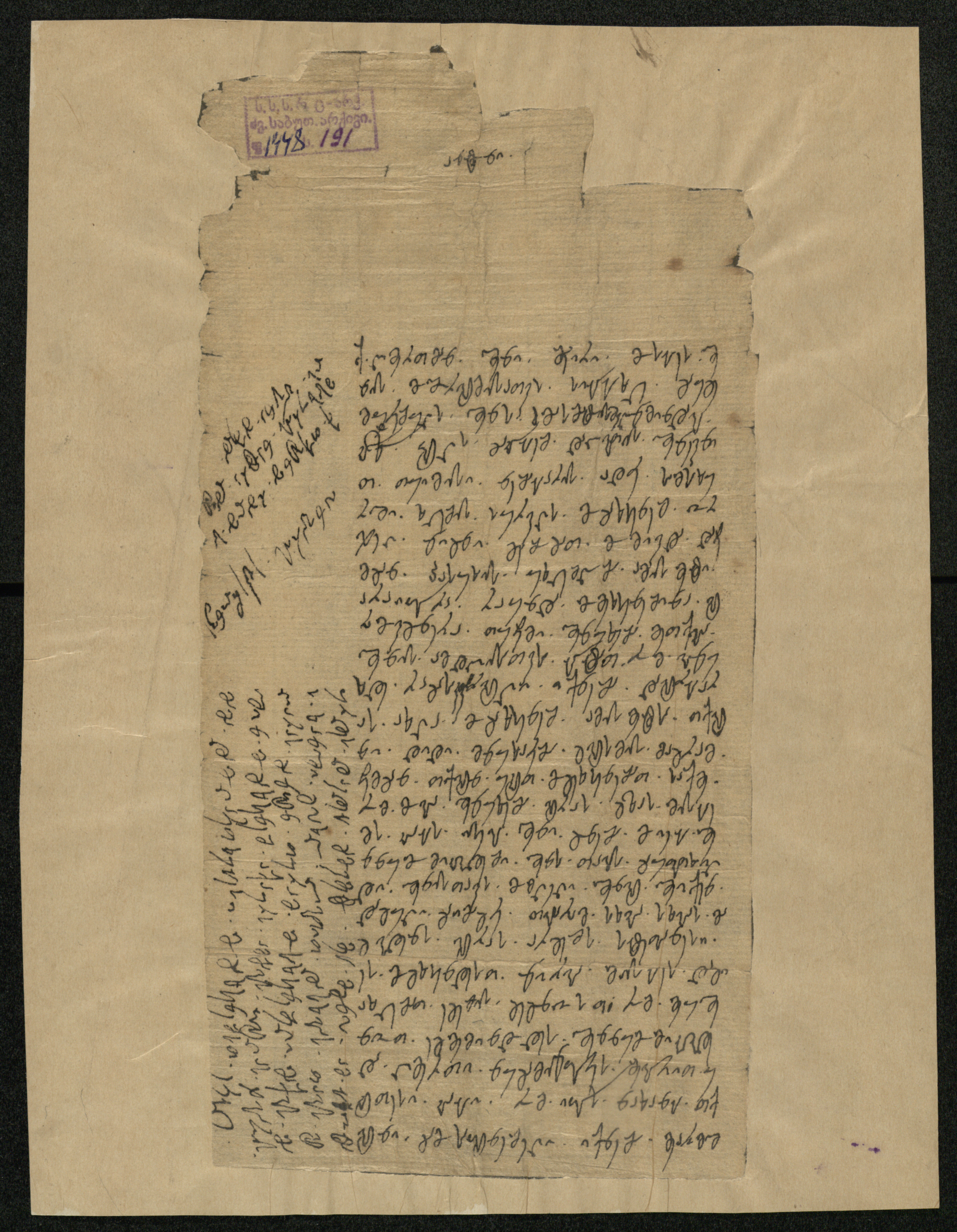 ქაღალდი მოყვითალო, დაწერილი შავი მელნით
