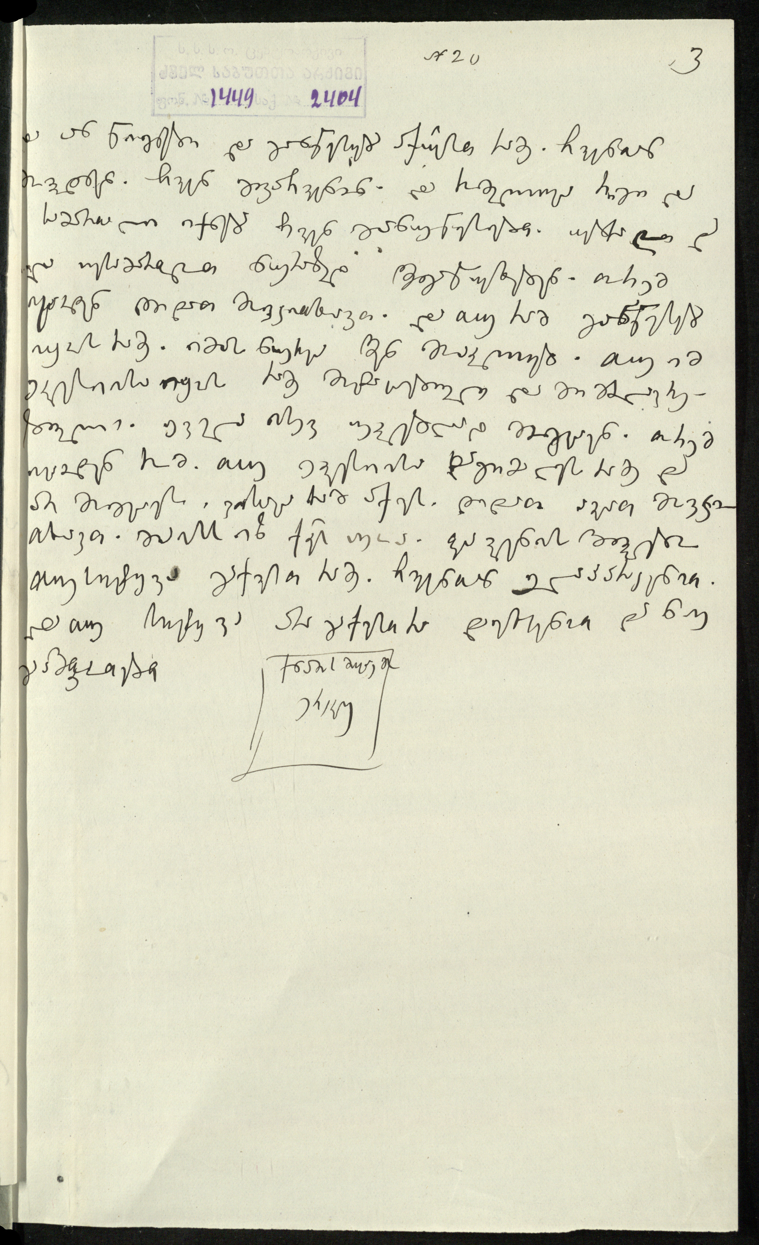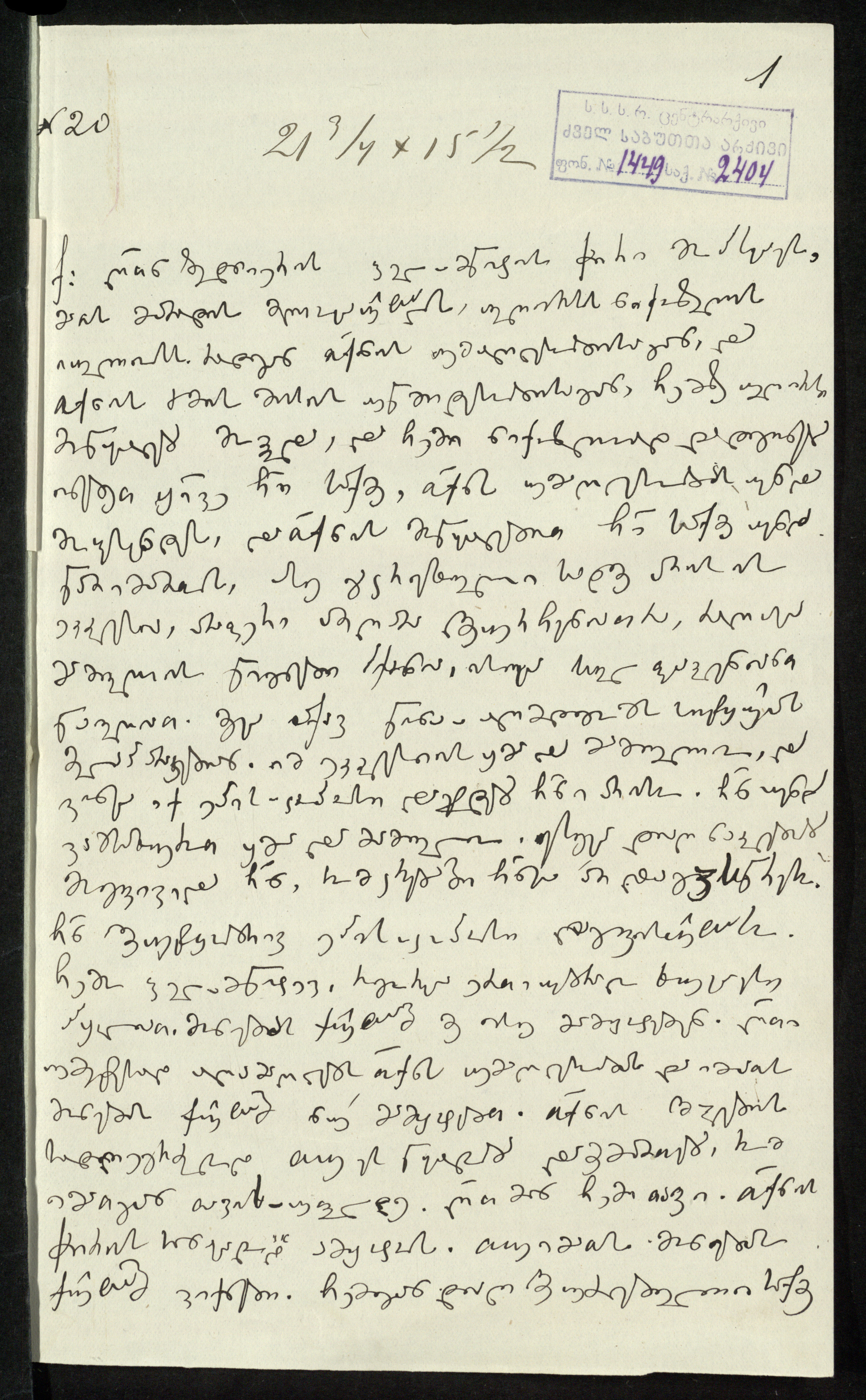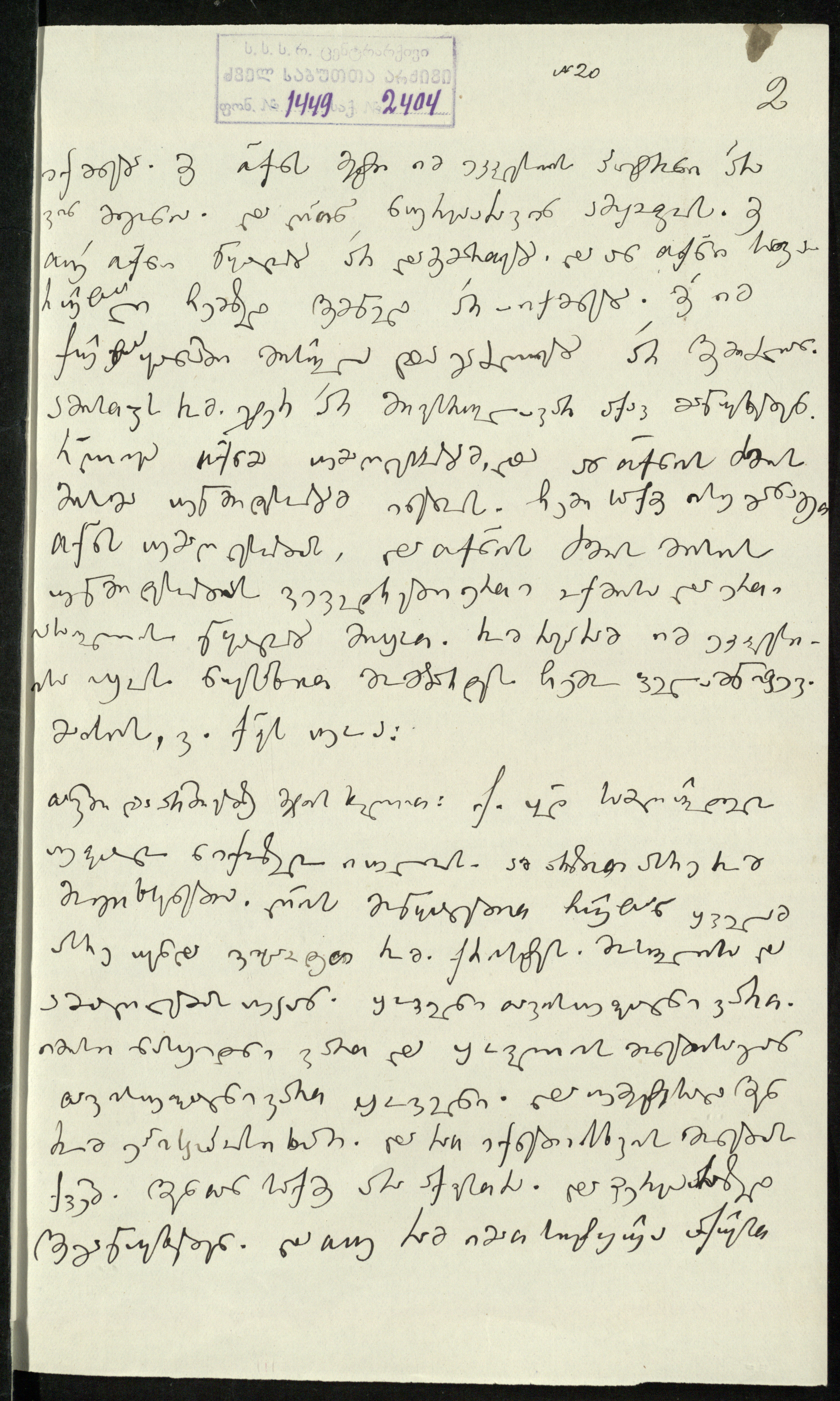 2. სარგის კაკაბაძეს მითითებული აქვს საბუთის დედნის ზომა: 21¾,X151/2 და ძველი საარქივო-სააღრიცხვო ნომერი N20.