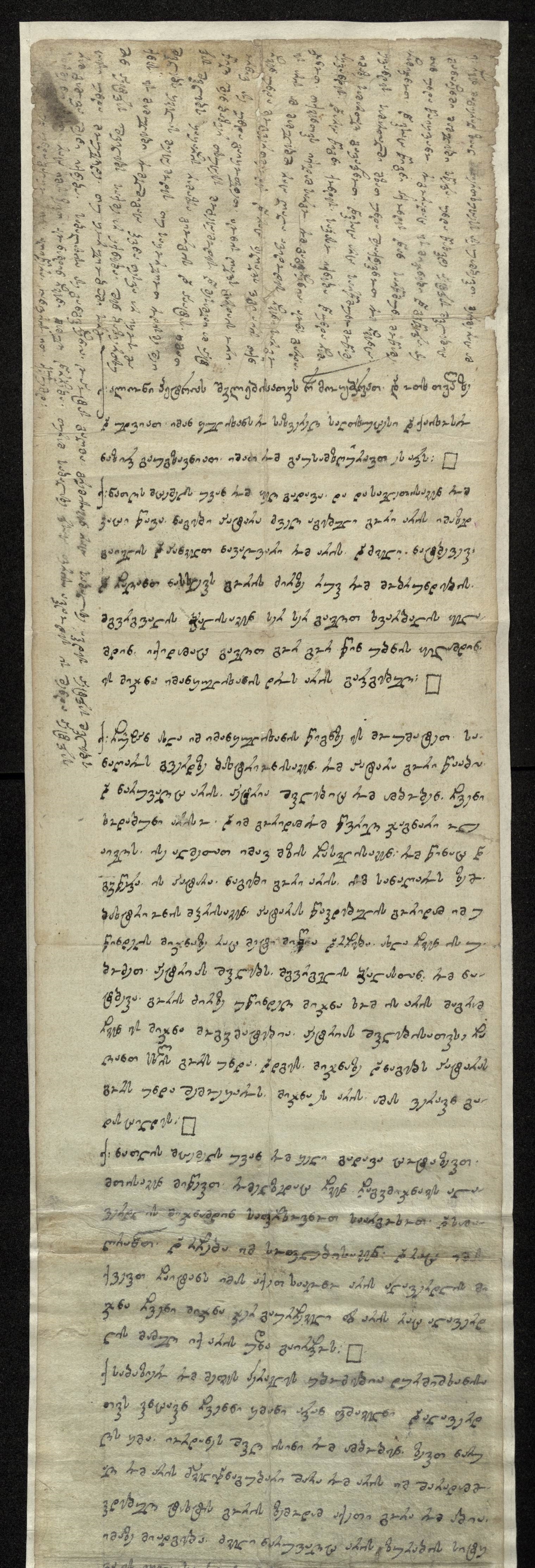 2. გადამწერის ხელით -,,ქ. ეს სწორეთ ასლის პირიდამ გარდაგვიწერია უმეტნაკლოთ წინაშე მღვთისა და მოგვირთმევია. მაისის კე (25), უპზ (1799) დეკანოზი გიორგი".