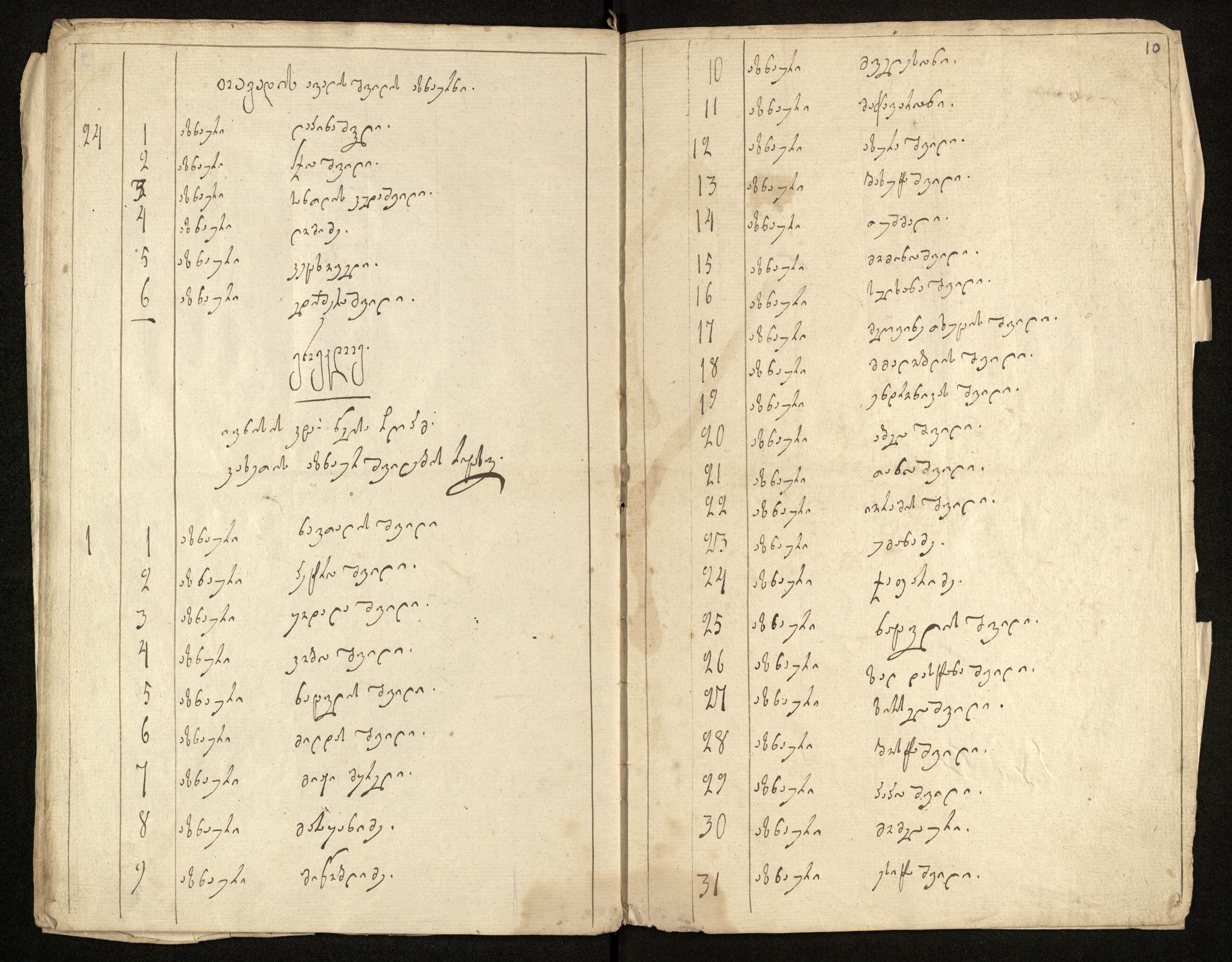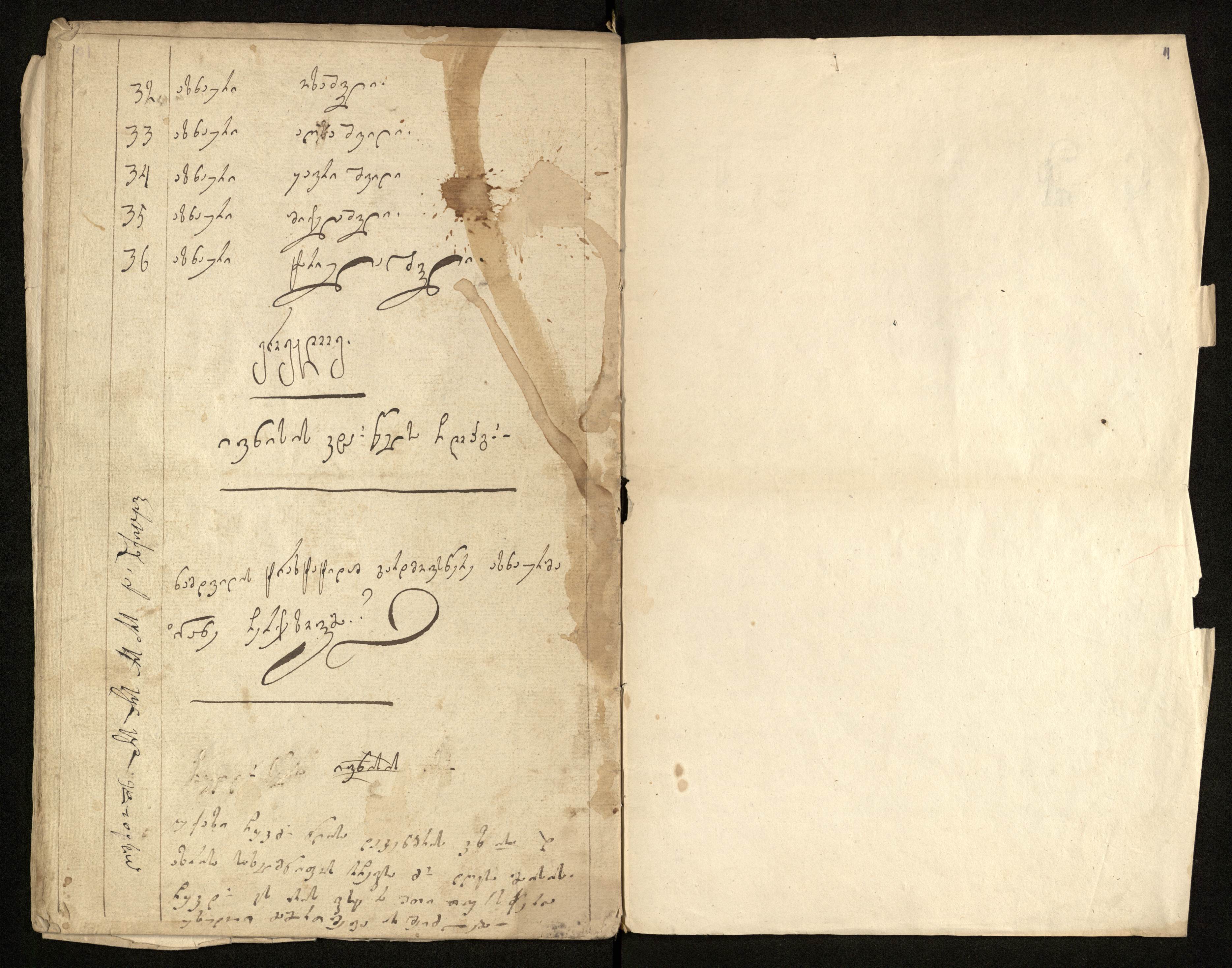 ქაღალდი მოთეთრო ლაქებით, დაწერილი ყავისფერი მელნით