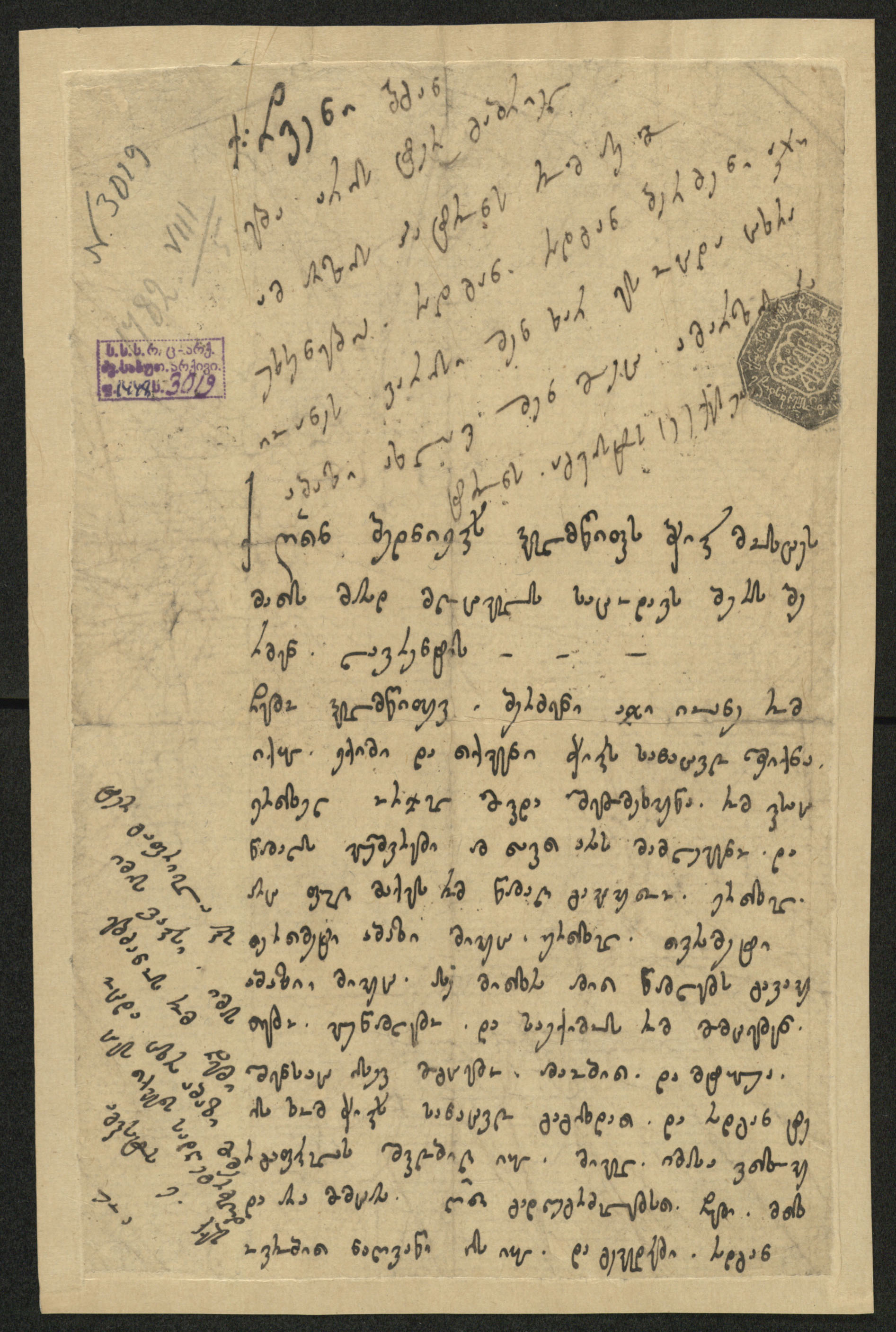 ქაღალდი მოყვითალო, დაწერილი შავი და ყავისფერი მელნით.