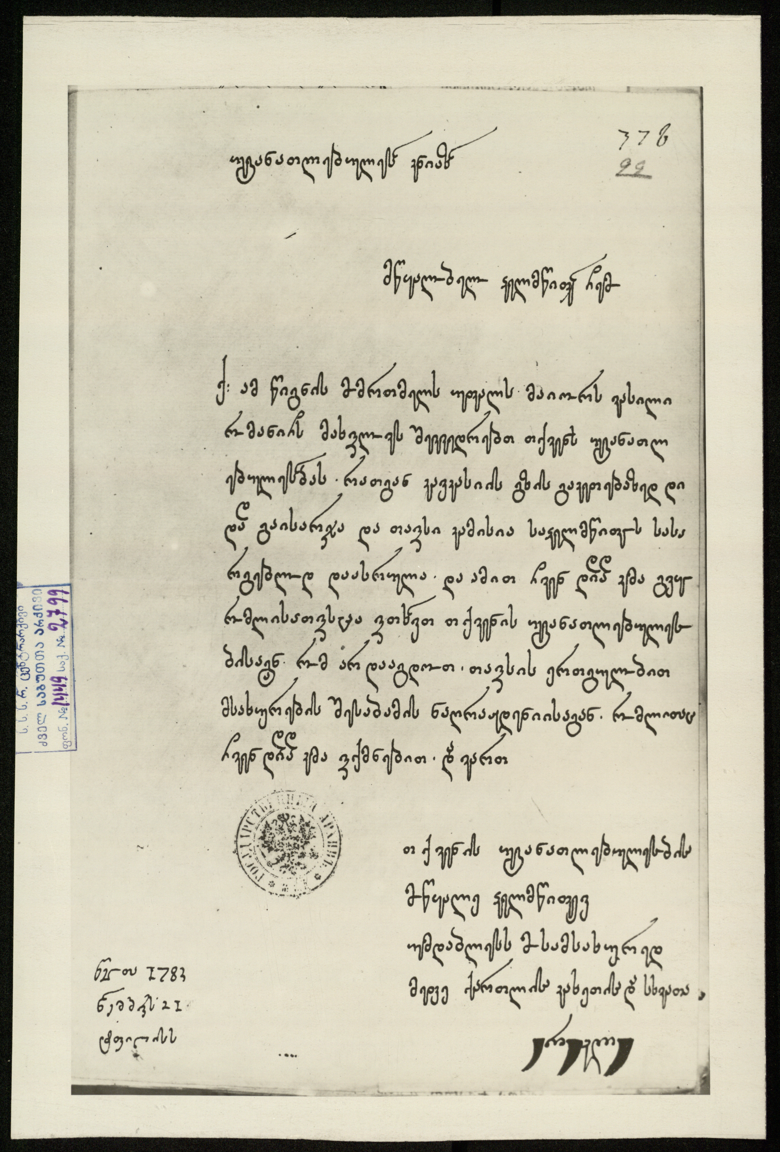 საქართველოს ეროვნული არქივი, საისტორიო ცენტრალური არქივი.