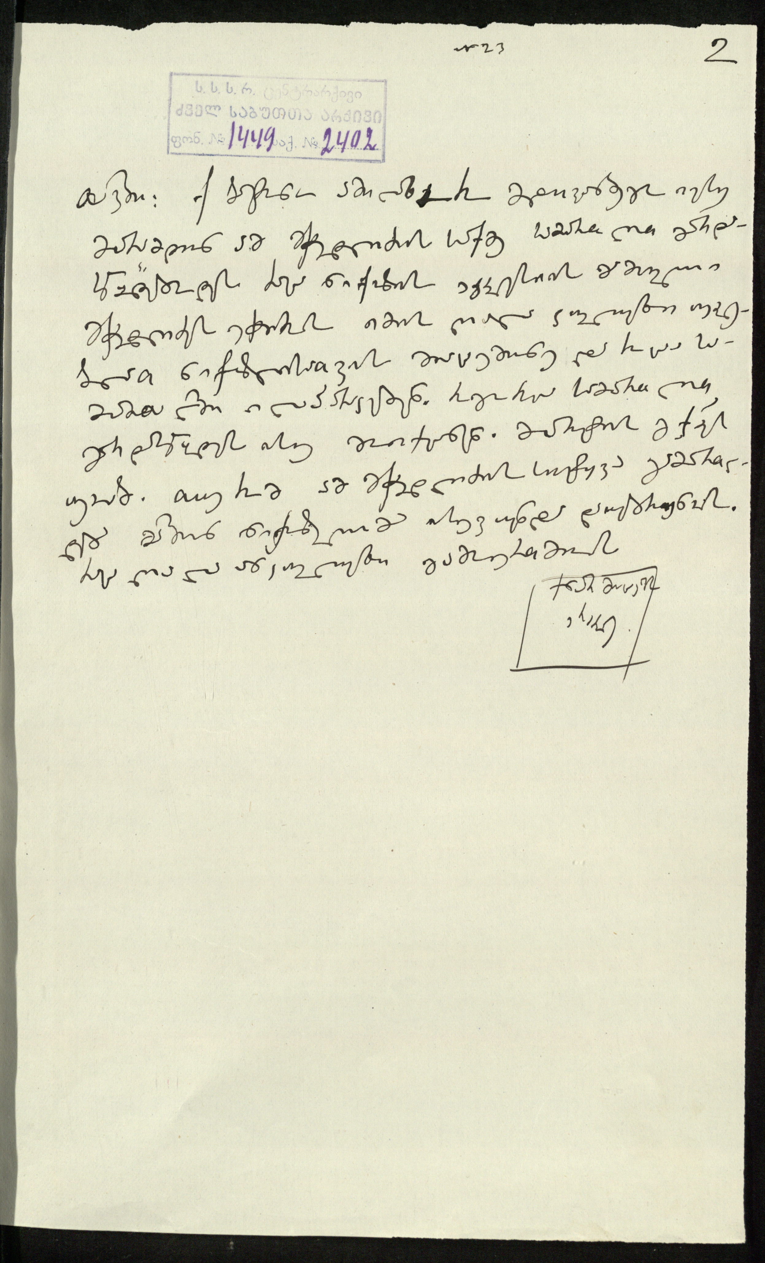 2. სარგის კაკაბაძეს მითითებული აქვს საბუთის დედნის ზომა: 213/4,X103/4 და ძველი საარქივო-სააღრიცხვო ნომერი: N23.