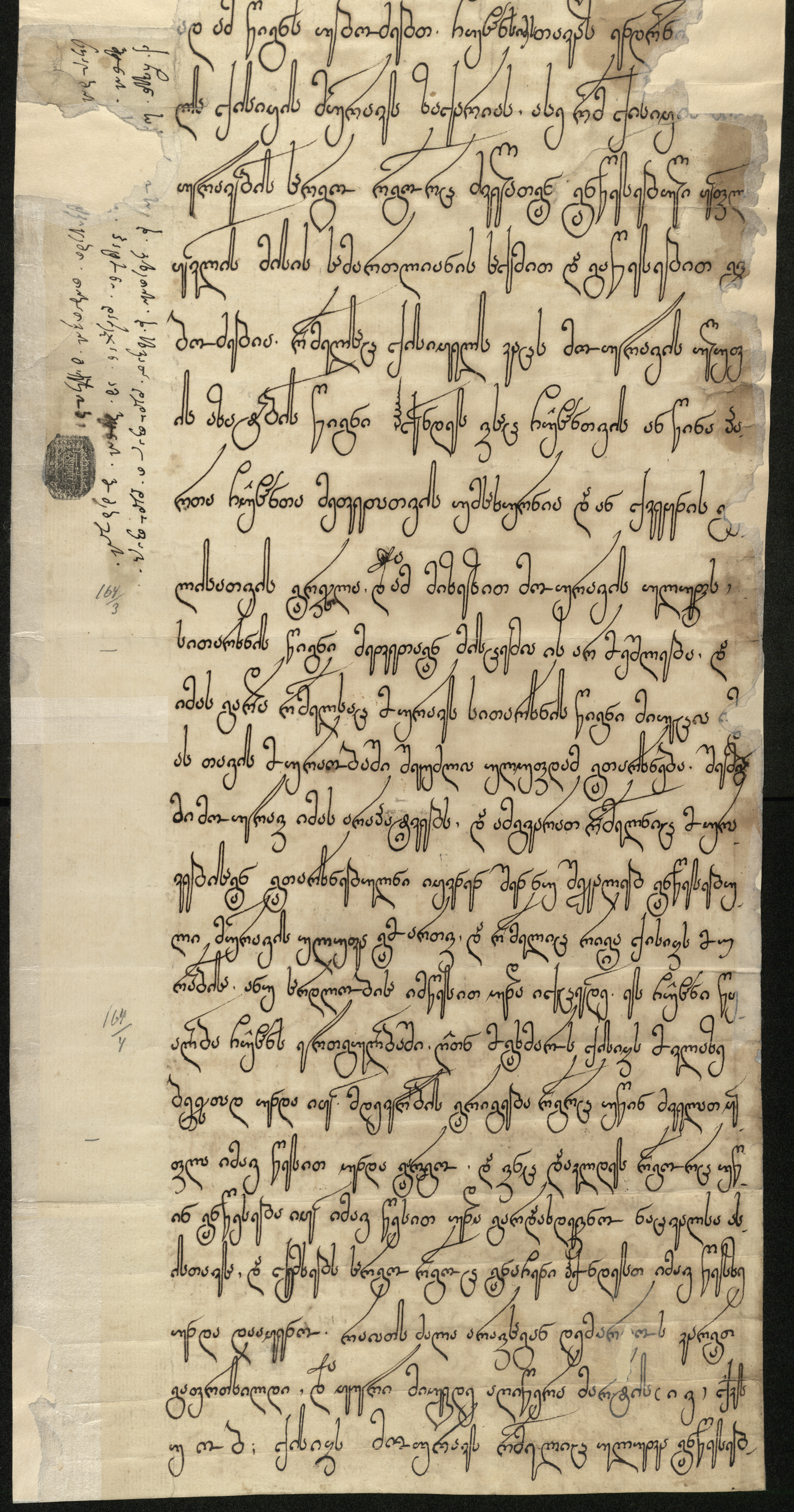 ქაღალდი ნაცრისფერი, დაწერილი ყავისფერი მელნით