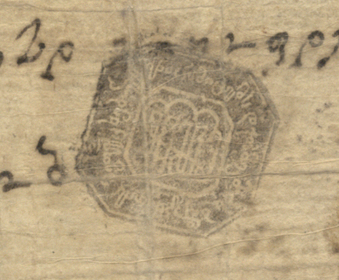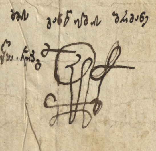 ჭვირნიშნიანი ქაღალდი ნაცრისფერი, დაწერილი ყავისფერი და შავი მელნით
