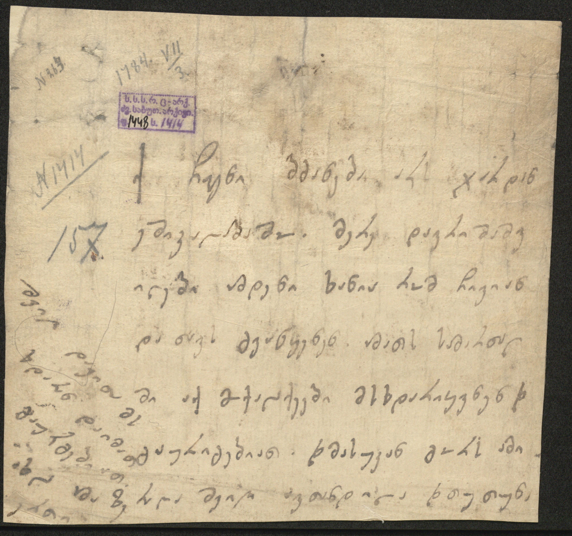 ქაღალდი მოთეთრო, დაწერილი ყავისფერი და შავი მელნით