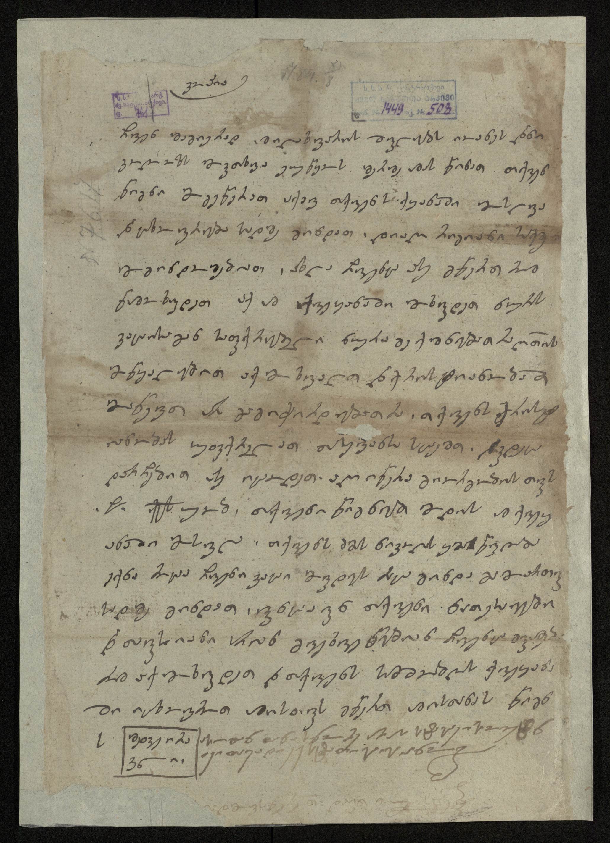 ჭვირნიშნიანი ქაღალდი ნაცრისფერი, დაწერილი ყავისფერი მელნით