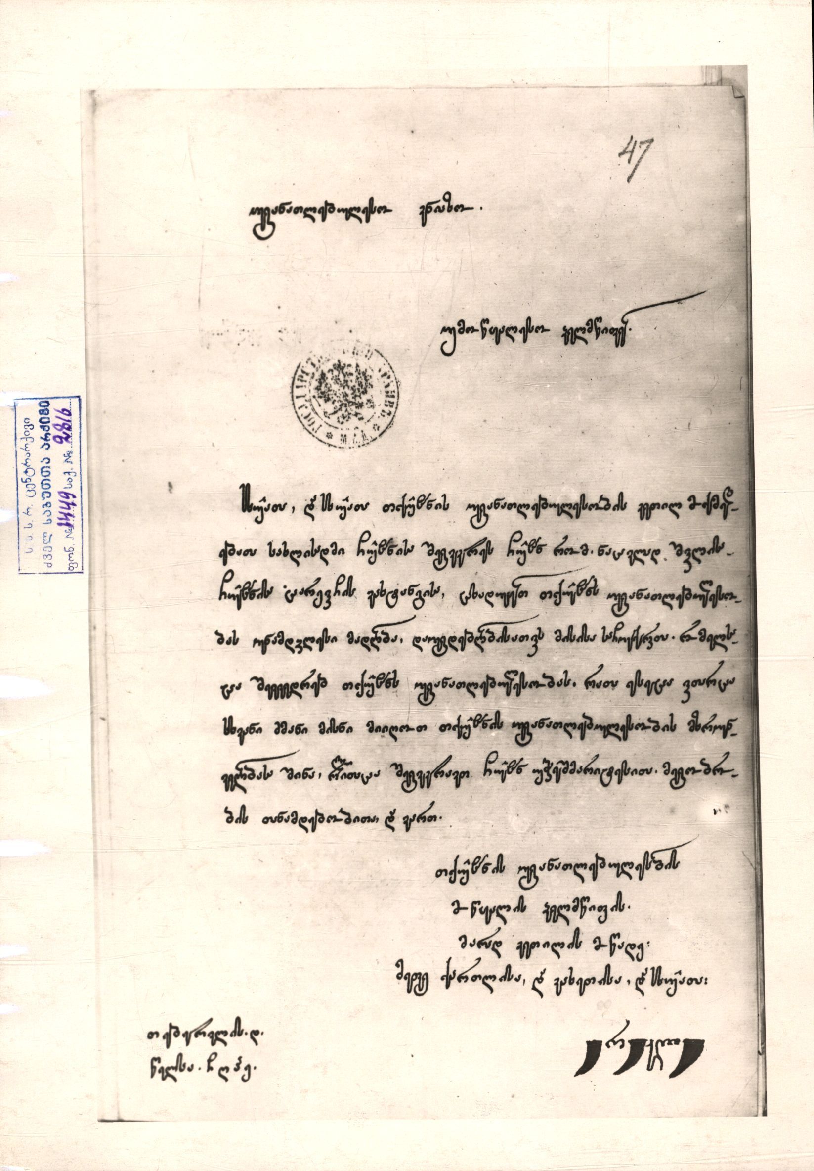 საქართველოს ეროვნული არქივი, საისტორიო ცენტრალური არქივი.