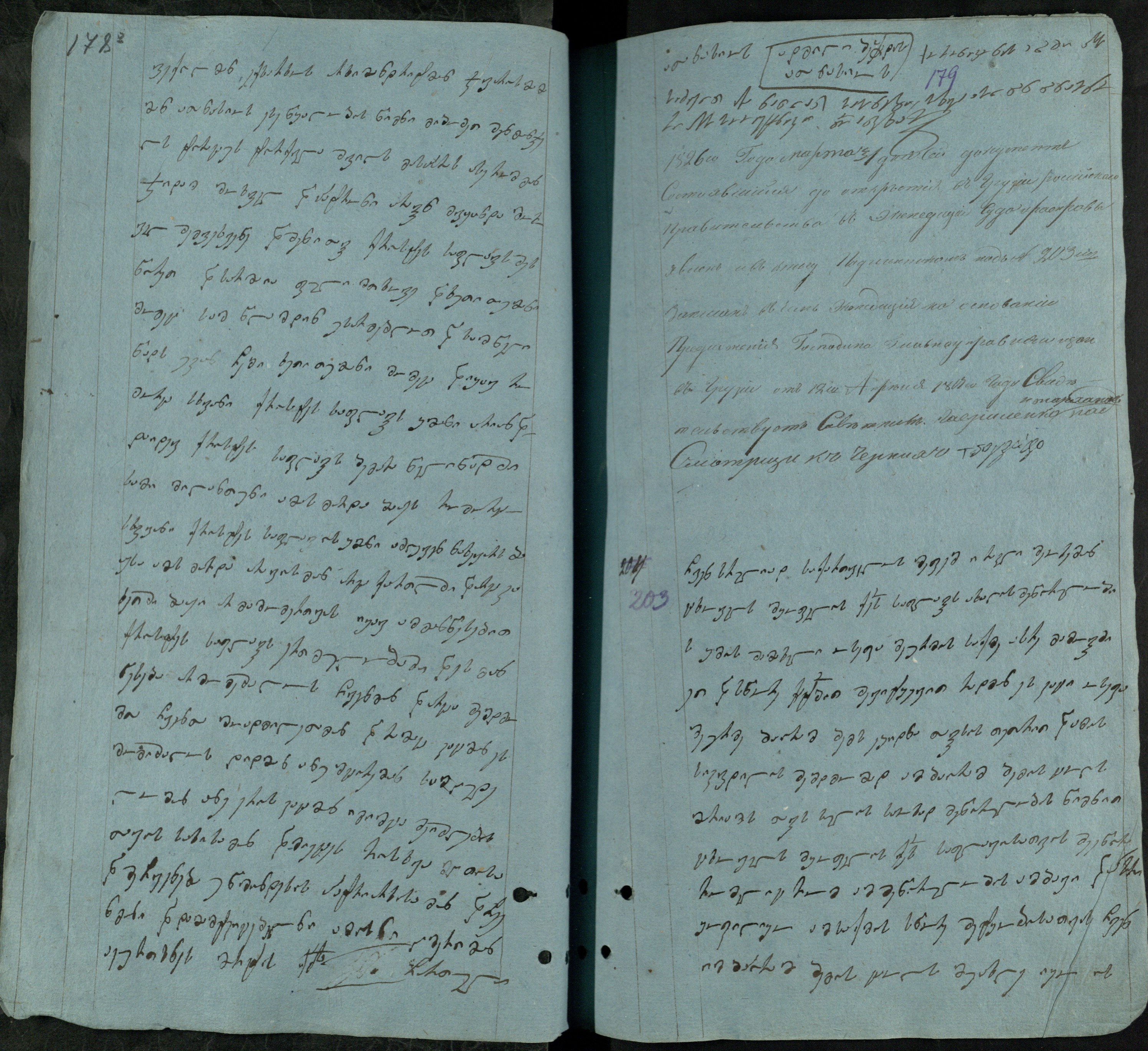 ქაღალდი ცისფერი, დაწერილი შავი მელნით