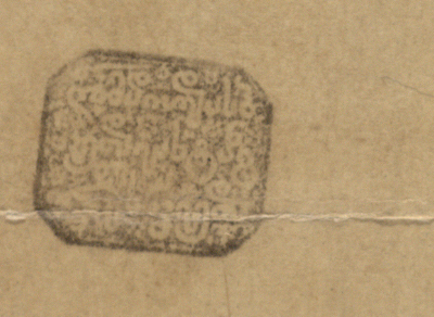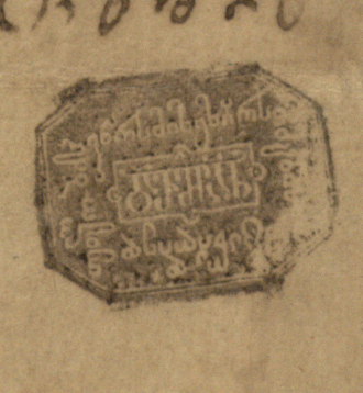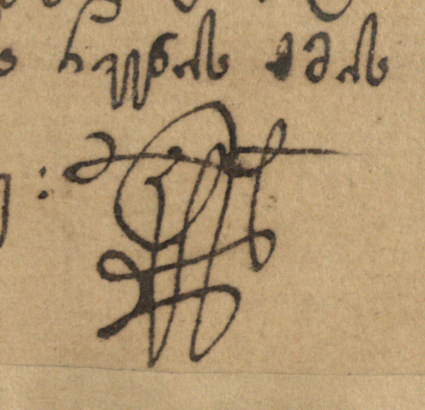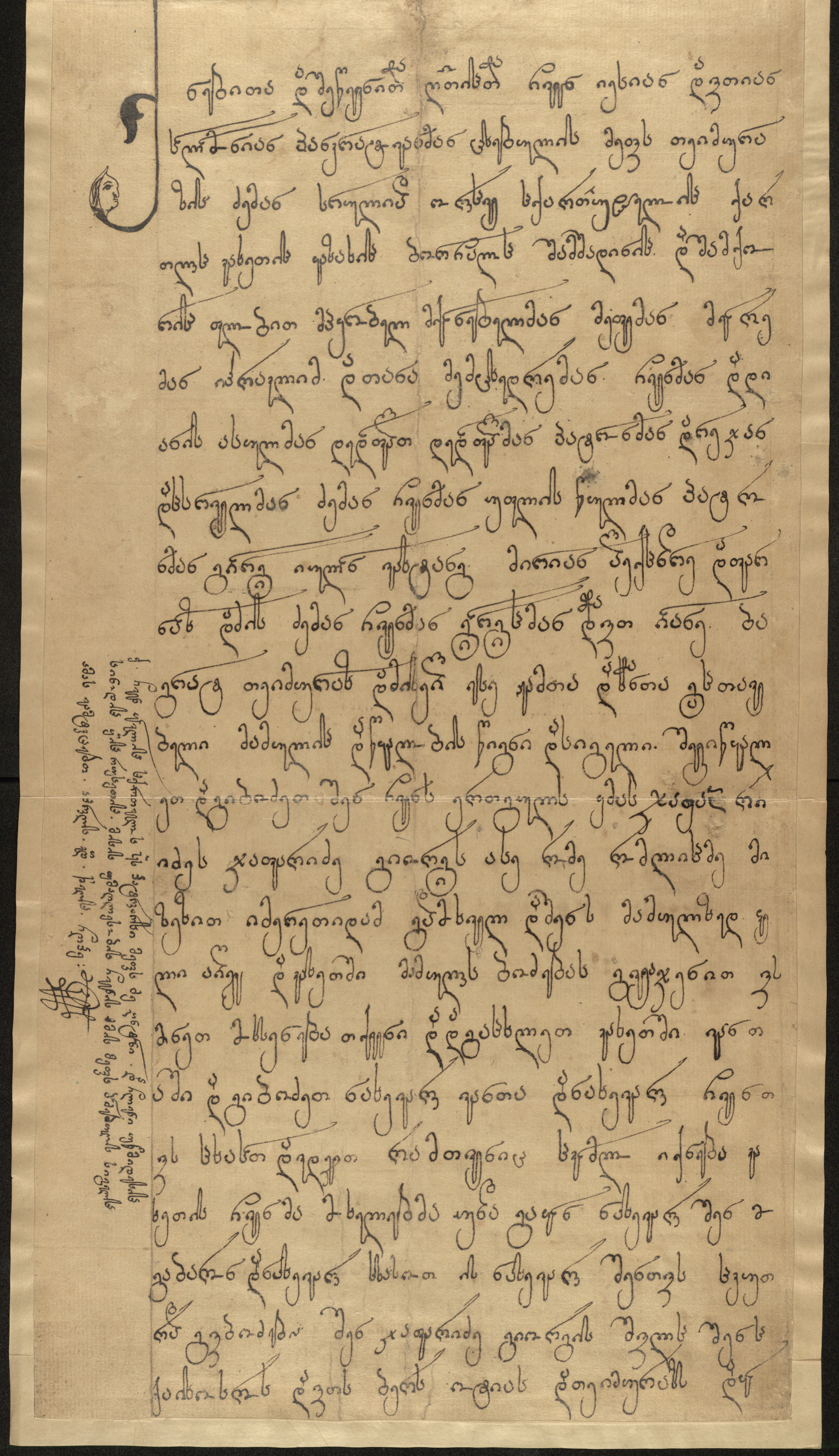 ჭვირნიშნიანი ქაღალდი ყვითელი, დაწერილი შავი და ყავისფერი მელნით