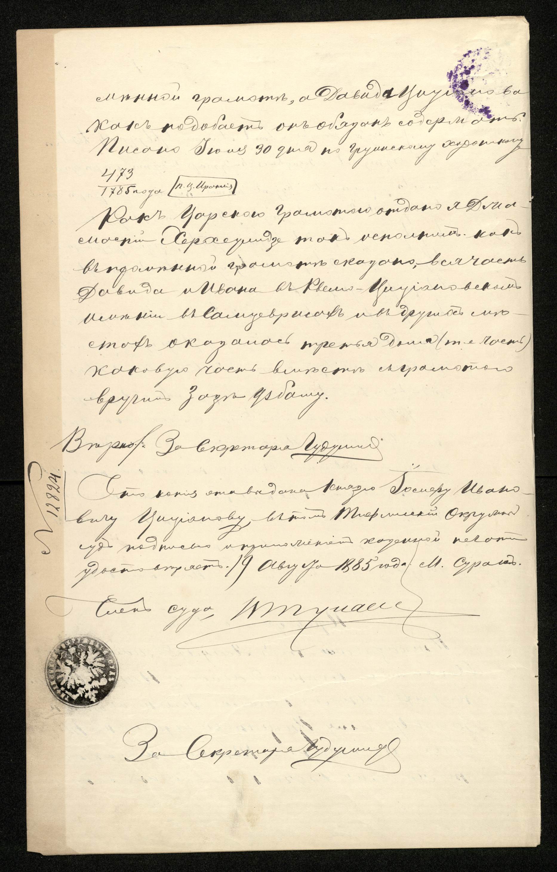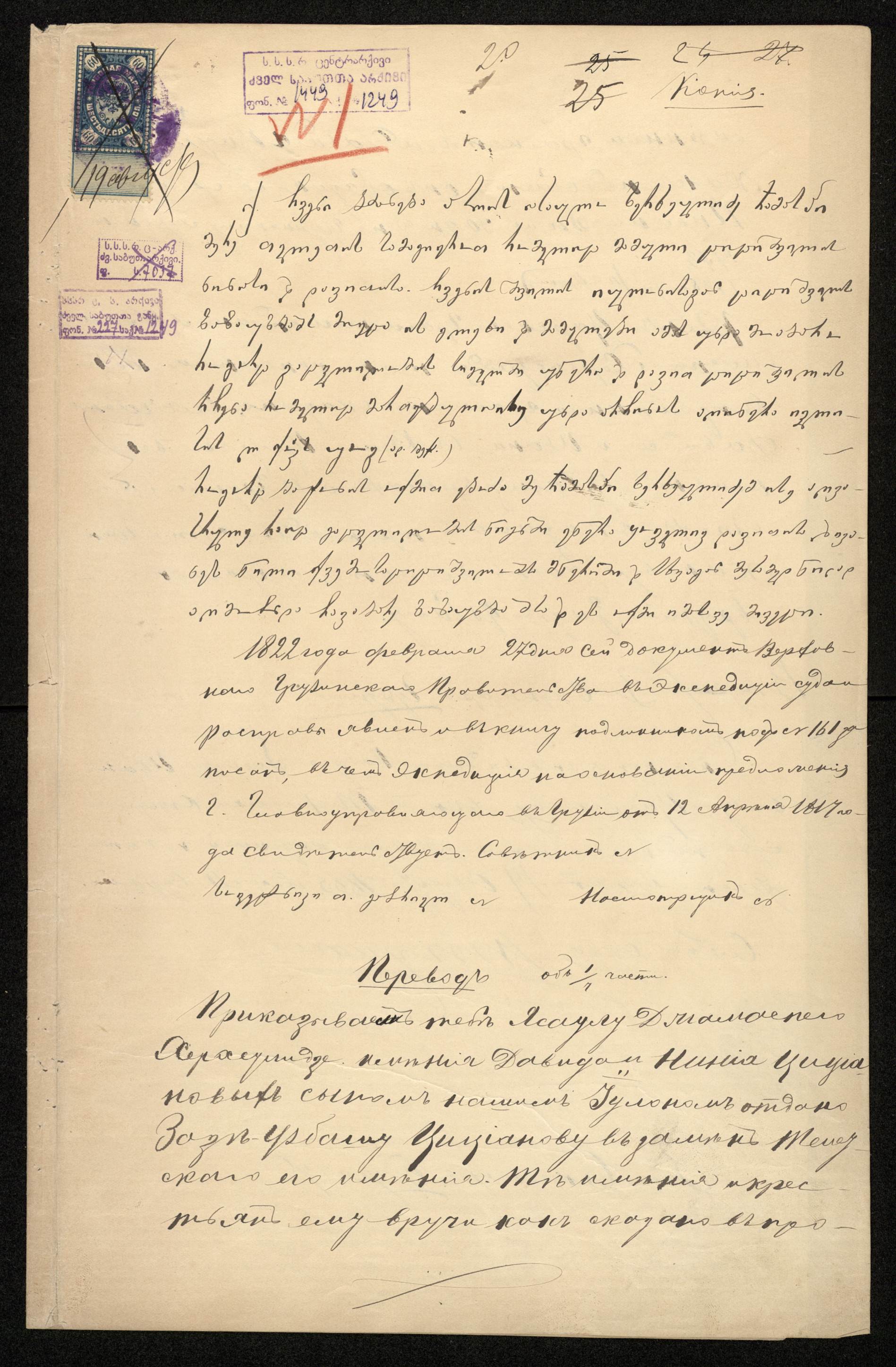 7. საბუთს მარცხენა ზედა კიდეზე ახლავს მარკა რუსული წარწერით - ,,60 коп., 19 август".